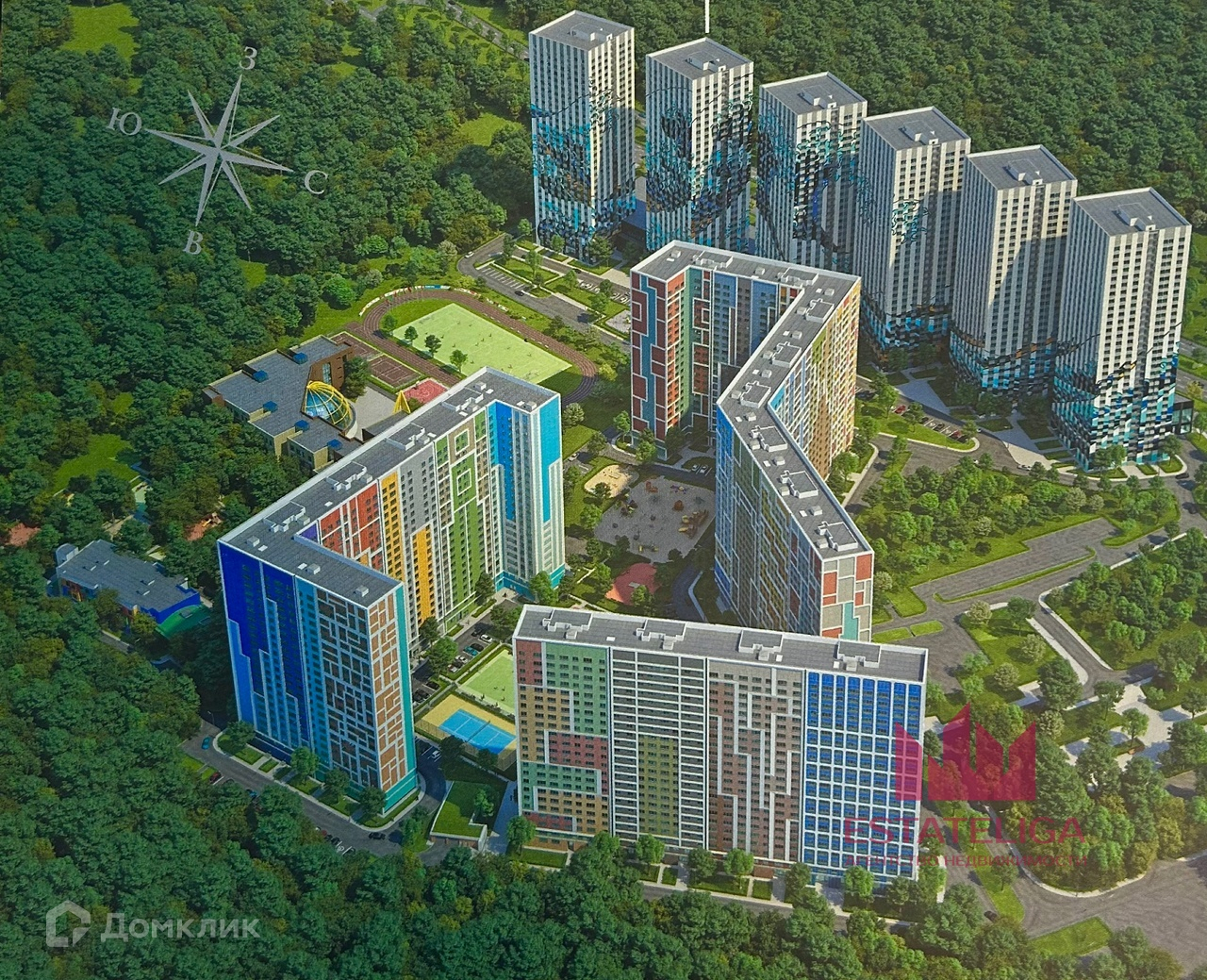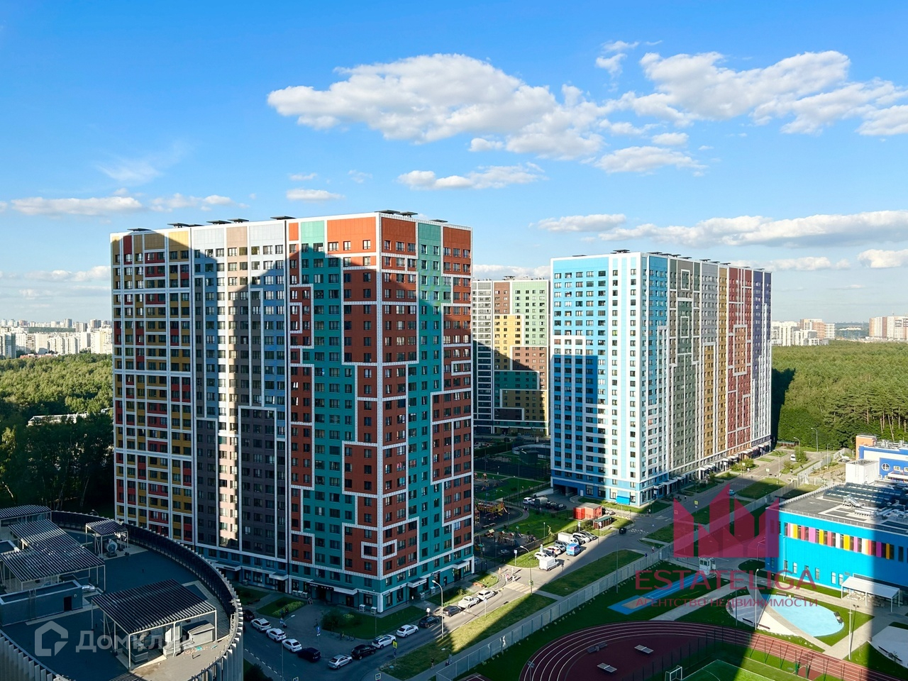 Закрытая и облагороженная территория, подземный паркинг, спортивный комплекс, школа и детские сады.