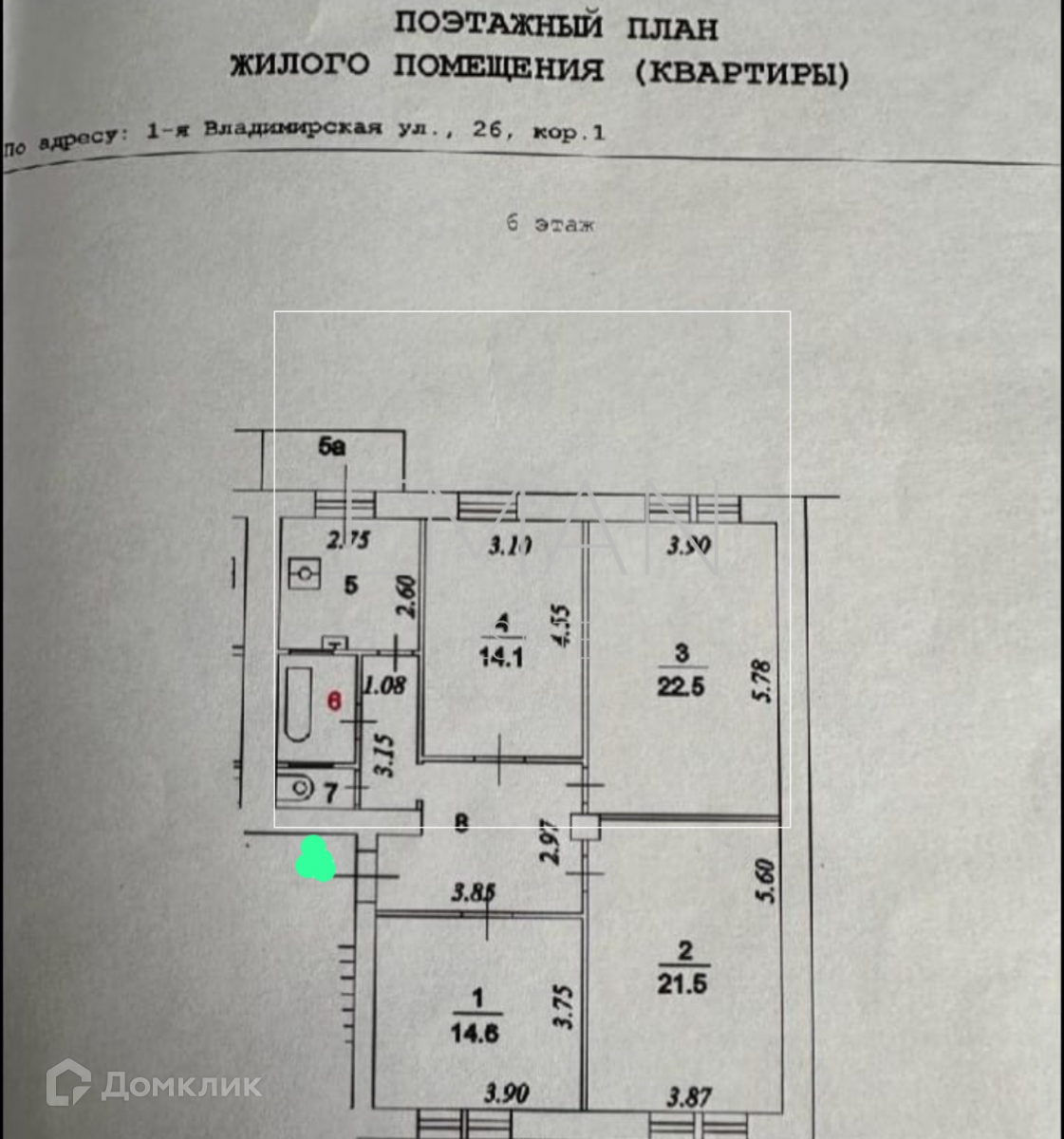 4-комнатная квартира, 101 м2, этаж 6 / 6, на продажу в Москве, 1-я Владимирская улица, 26к1