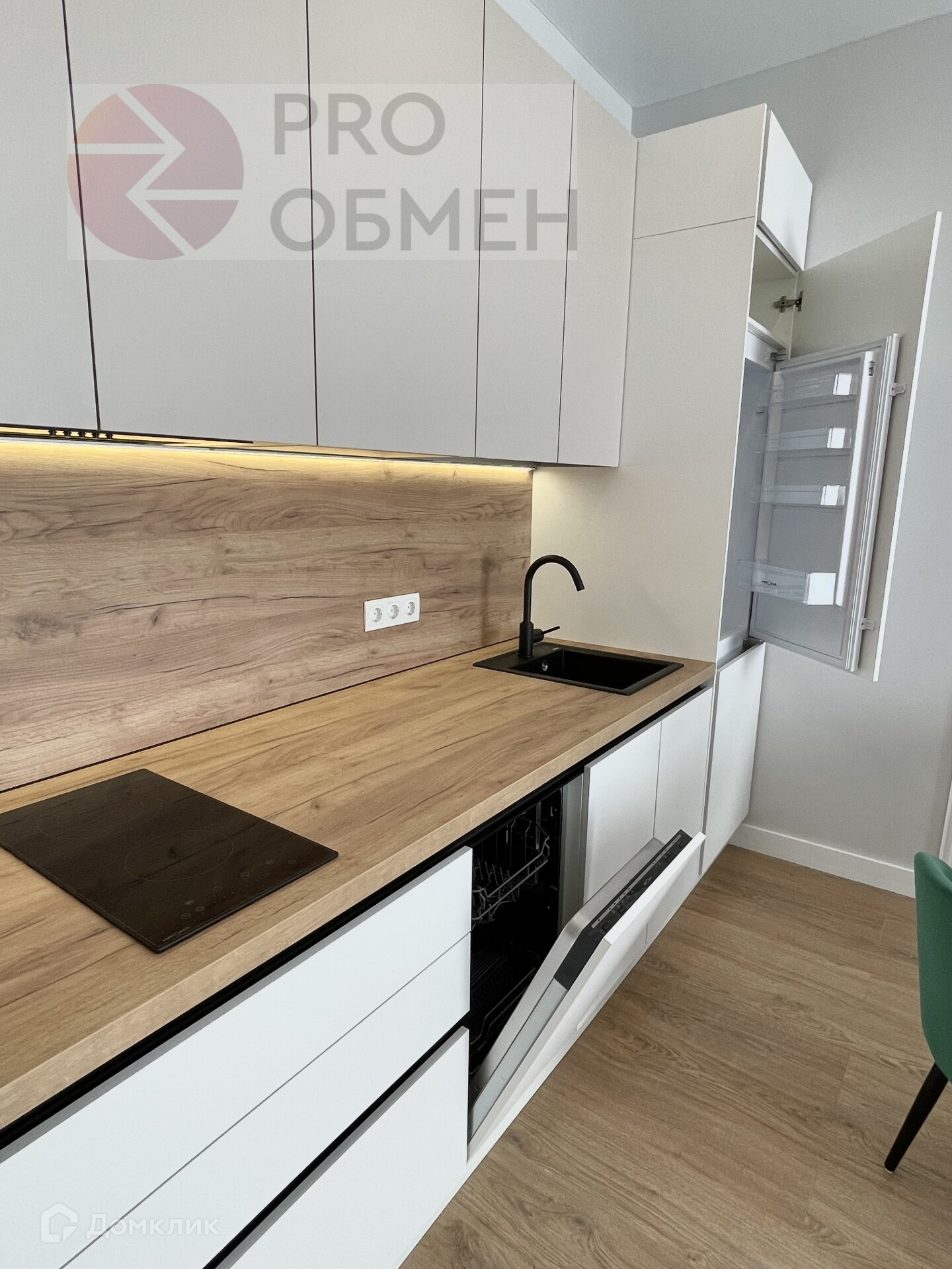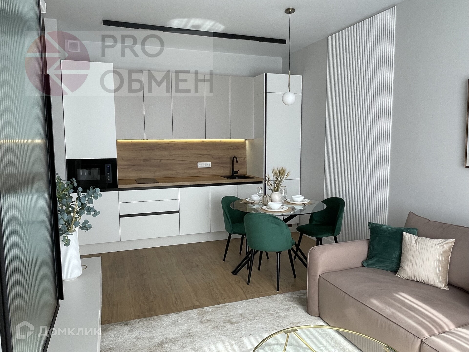 В прихожей вас встречает встроенный шкаф, где можно оставить верхнюю одежду. Просторная кухня-гостиная оснащена всем необходимым. Кухонный гарнитур имеет посудомоечную машину, холодильник, варочную панель, вытяжку, микроволновую печь. Не надо ни о чем думать, ведь кухонный стол и комфортный диван уже стоят на своих местах.