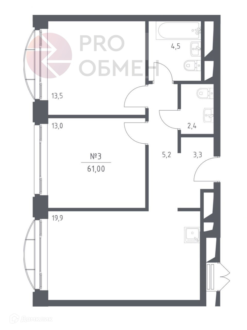Общая площадь 61 м2