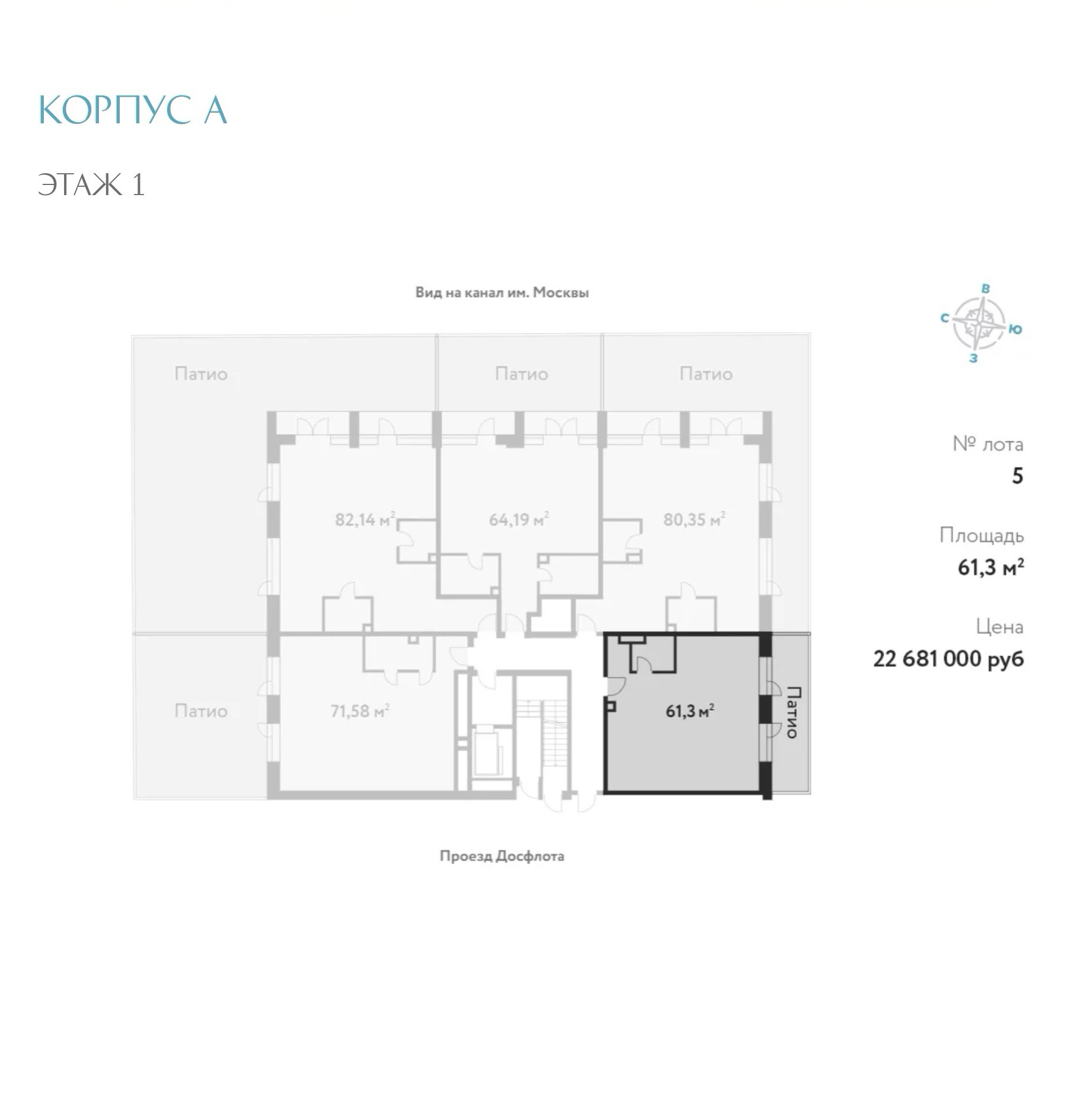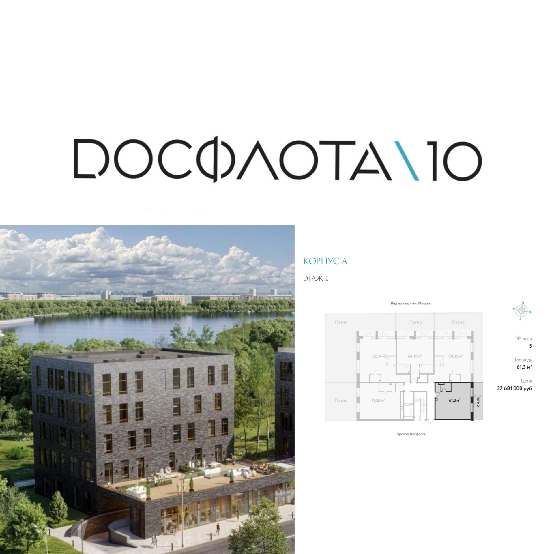 2-комнатная квартира, 61.3 м2, этаж 1 / 5, на продажу в Москве, проезд Досфлота, 12