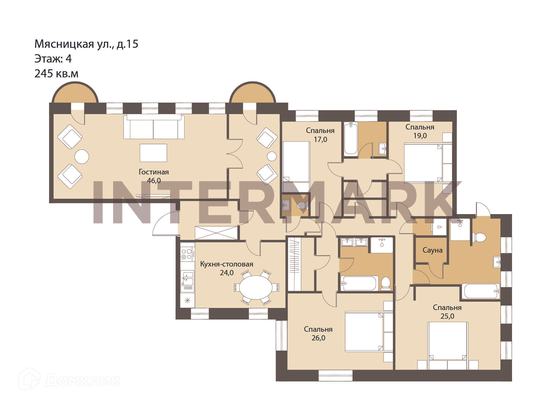 Многокомнатная квартира, 250.3 м2, этаж 4 / 5, на продажу в Москве, Мясницкая улица, 15
