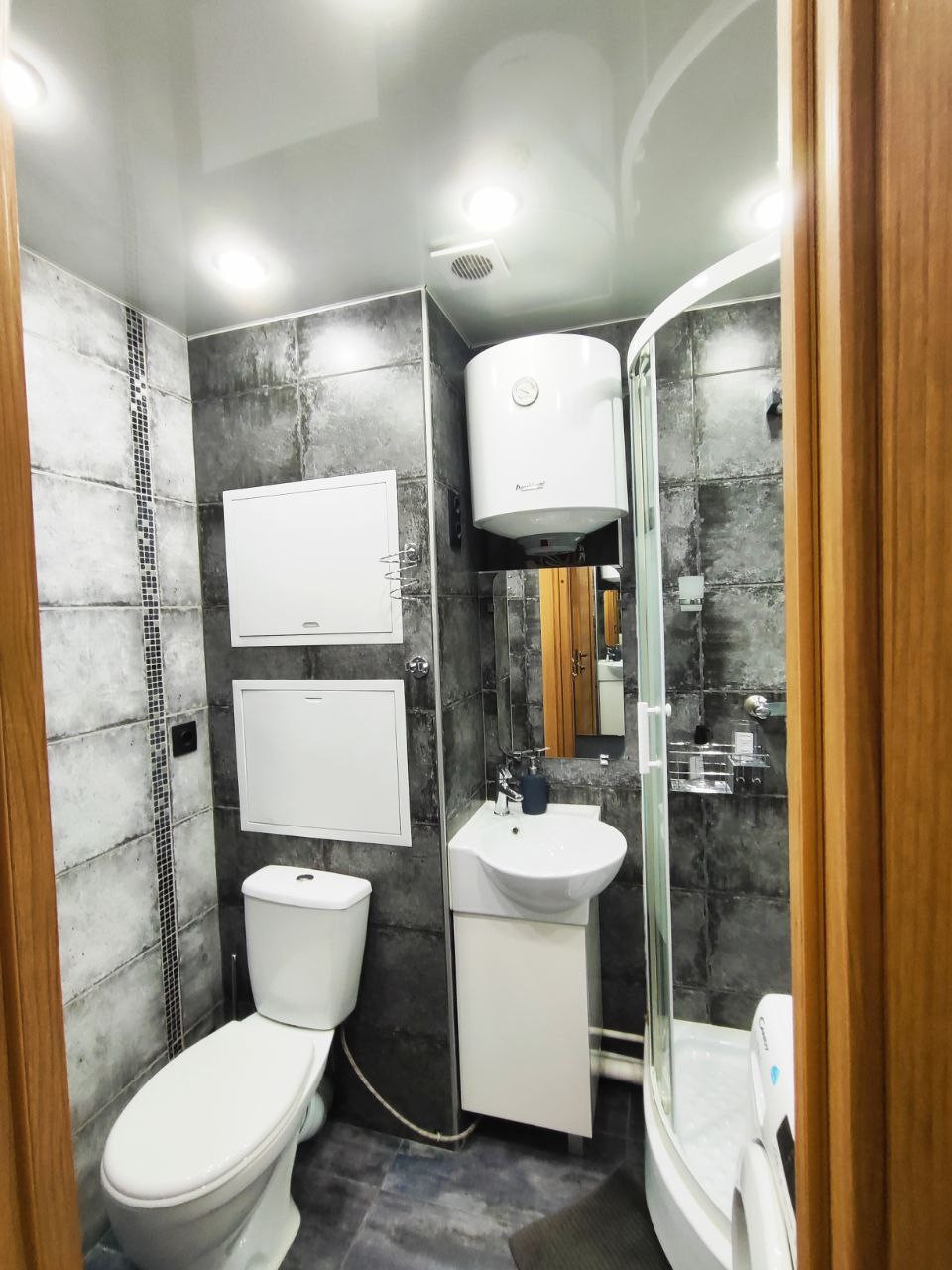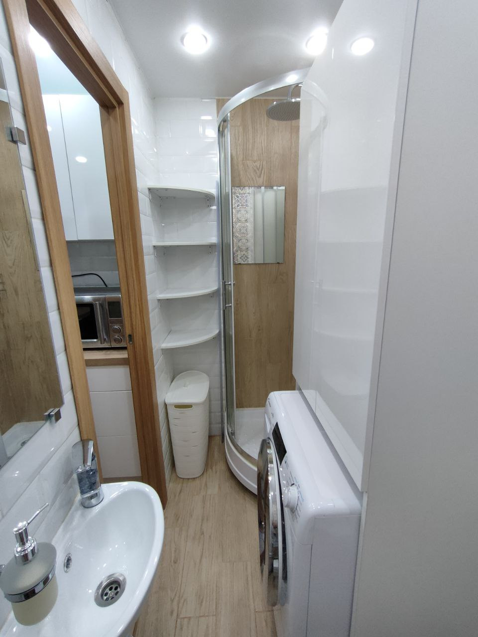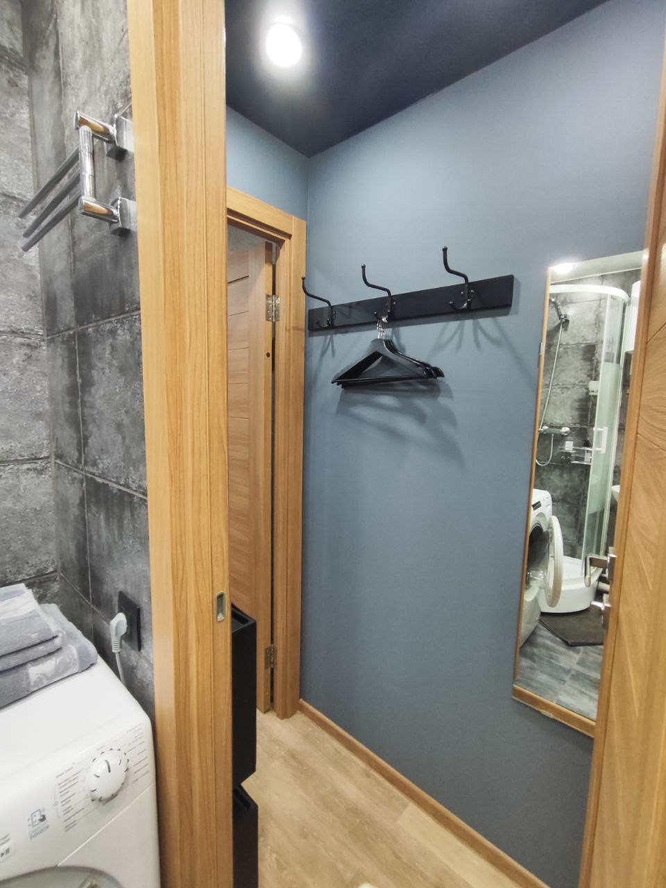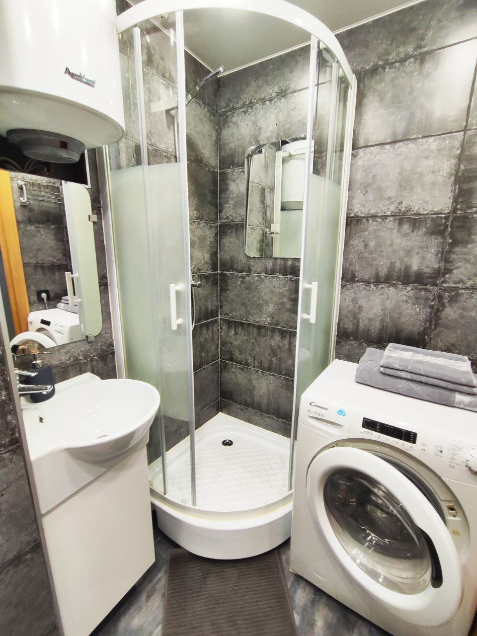 - в каждом помещении свой санузел, в котором есть стиральная машина, душевая кабина, раковина, унитаз.