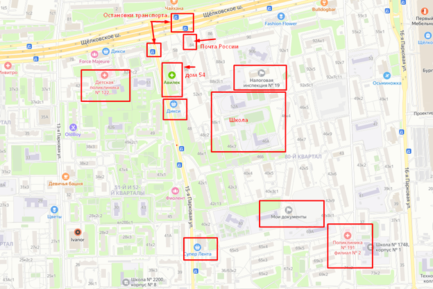 Отличная транспортная доступность. Возле дома находятся остановки общественного транспорта: на 15 Парковой три автобусных маршрута, и рядом же на Щелковском шоссе еще более 10 маршрутов. Транспорт идет до двух веток метро и МЦК.