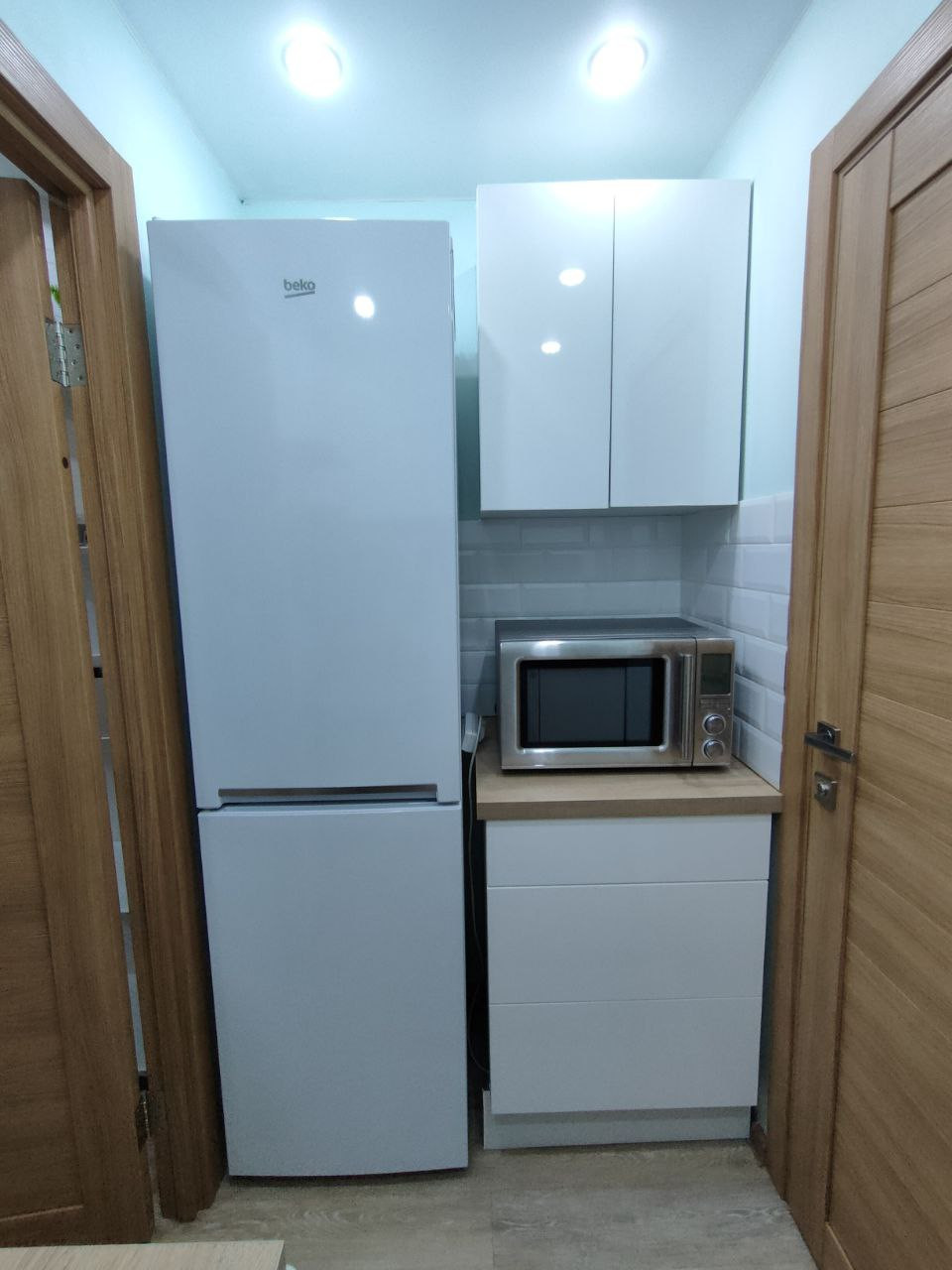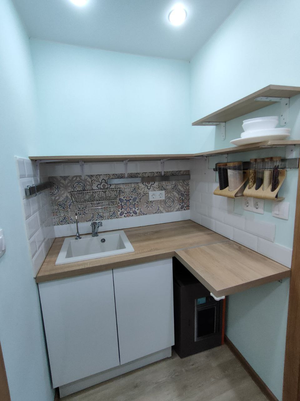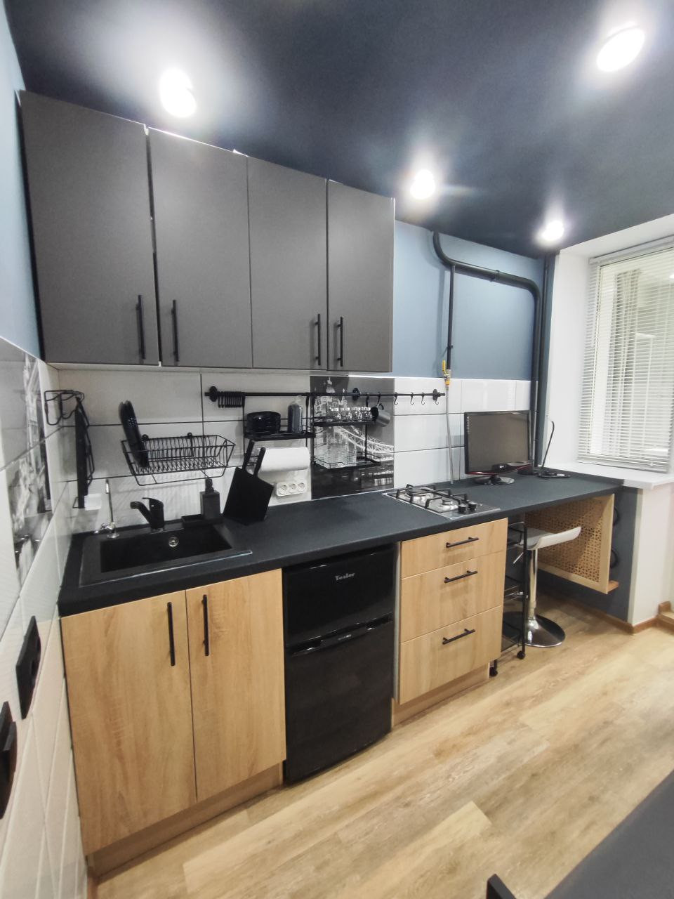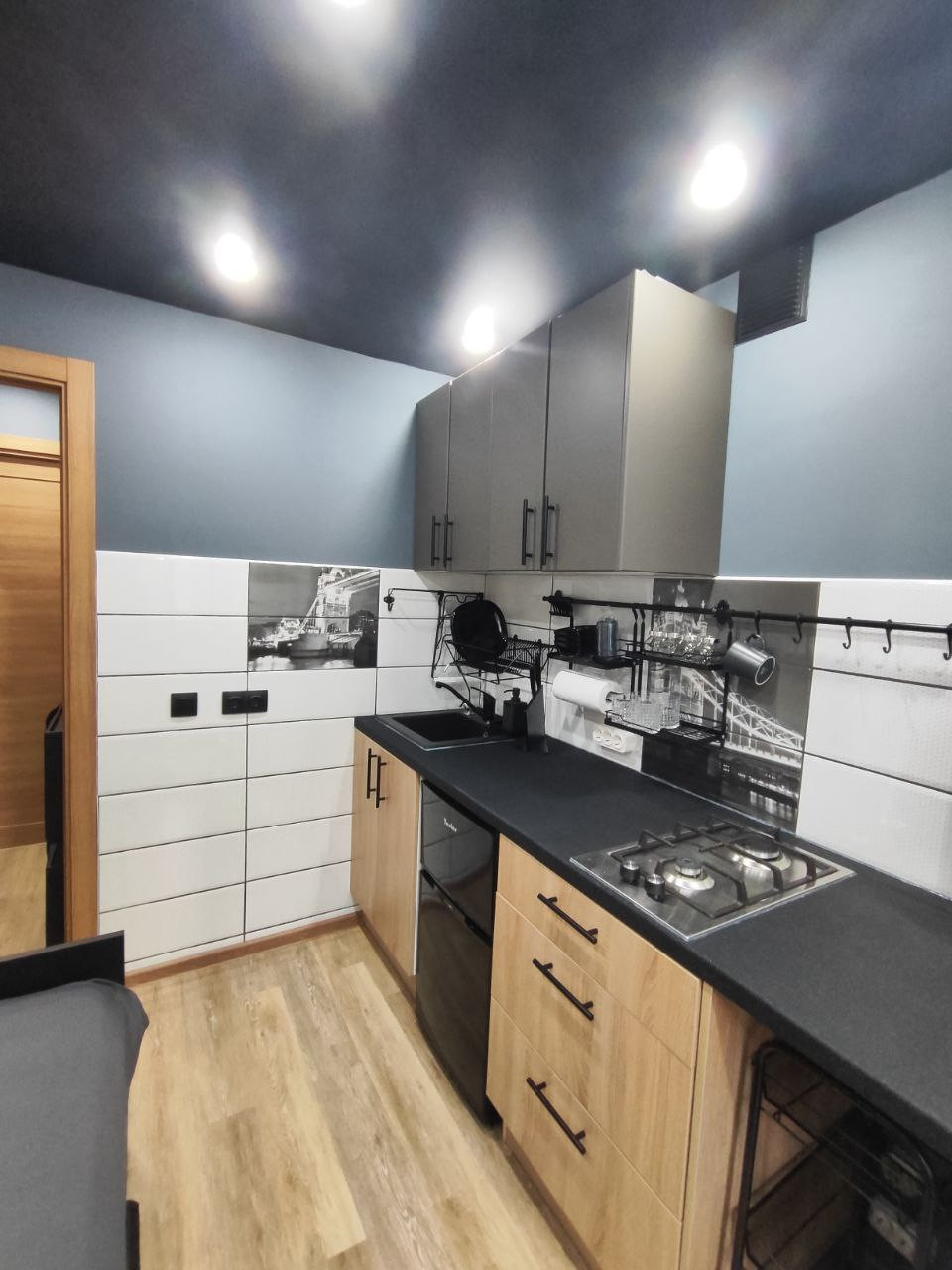 - в каждом отдельном помещении есть своя кухонная зона с кухонной мебелью и раковиной;
