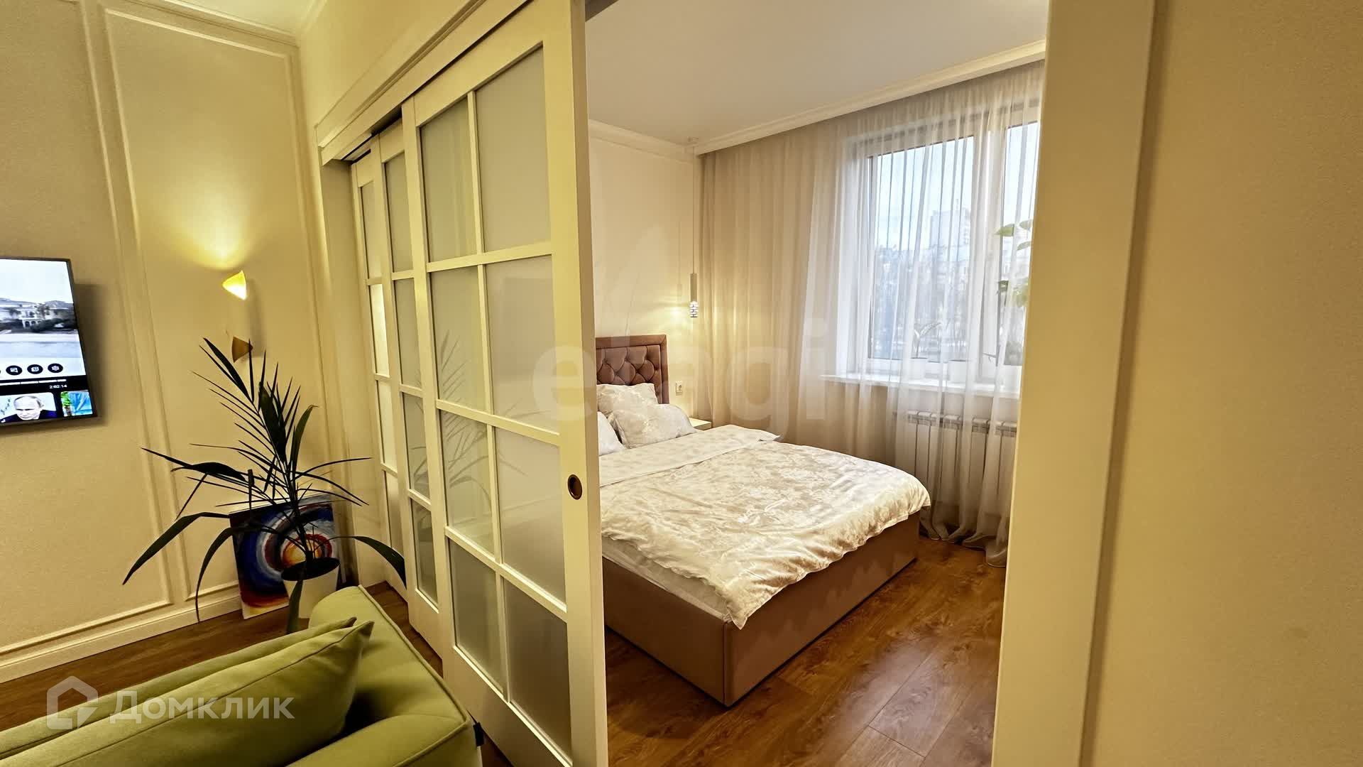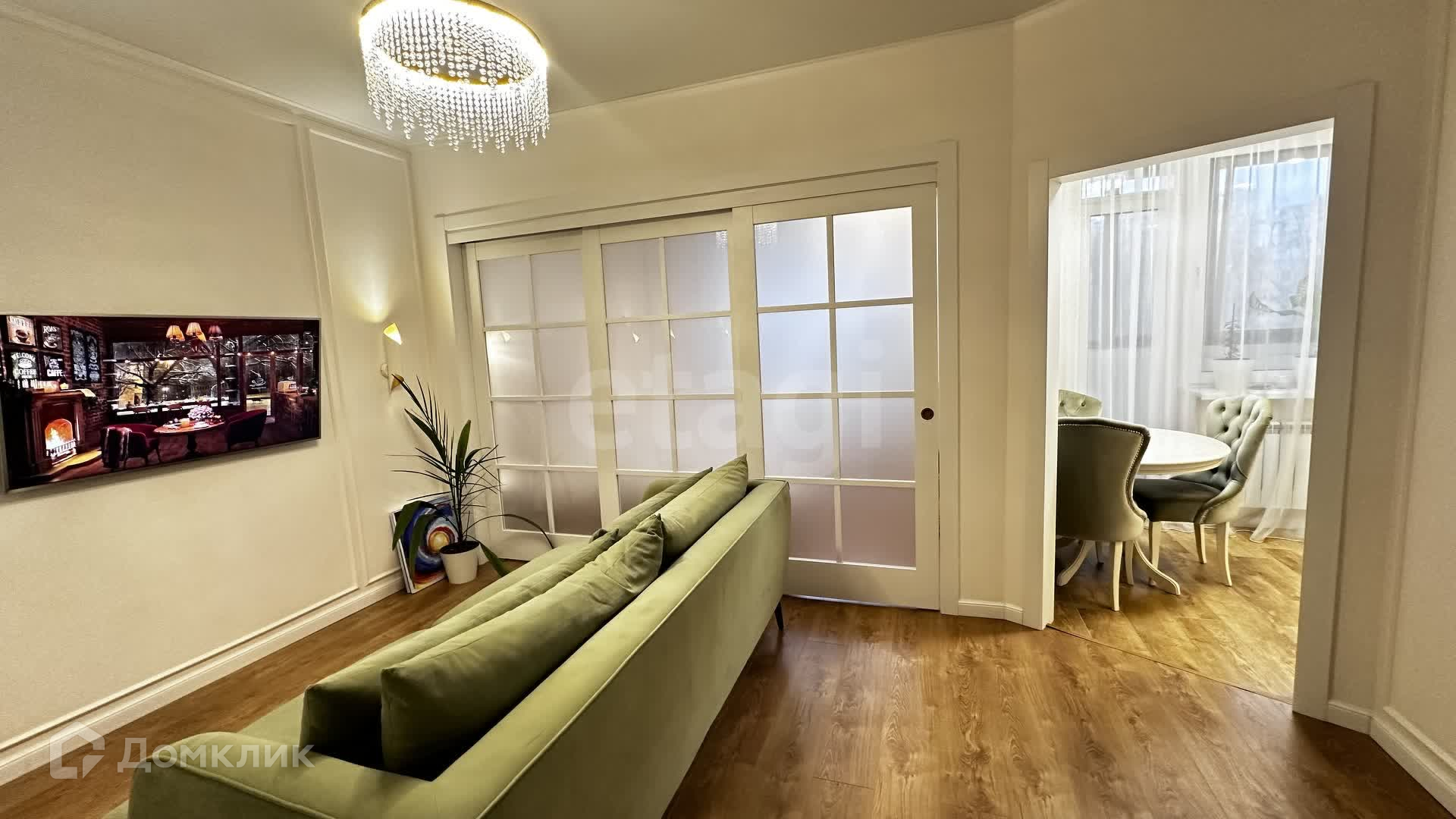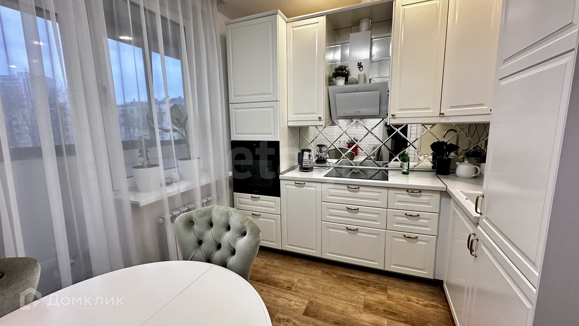 В квартире качественный ремонт: в прихожей и кухне на полу керамогранит, в жилом пространстве ламинат, натяжные потолки, сан узел в плитке, есть выделенная зона постирочной. В прихожей и гостиной за зеркалами спрятаны гардеробные. Установлен питьевой 7 ступенчатый фильтр с обратным осмосом. Есть балкон!