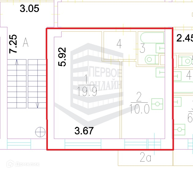 Общая площадь 35.4 м2