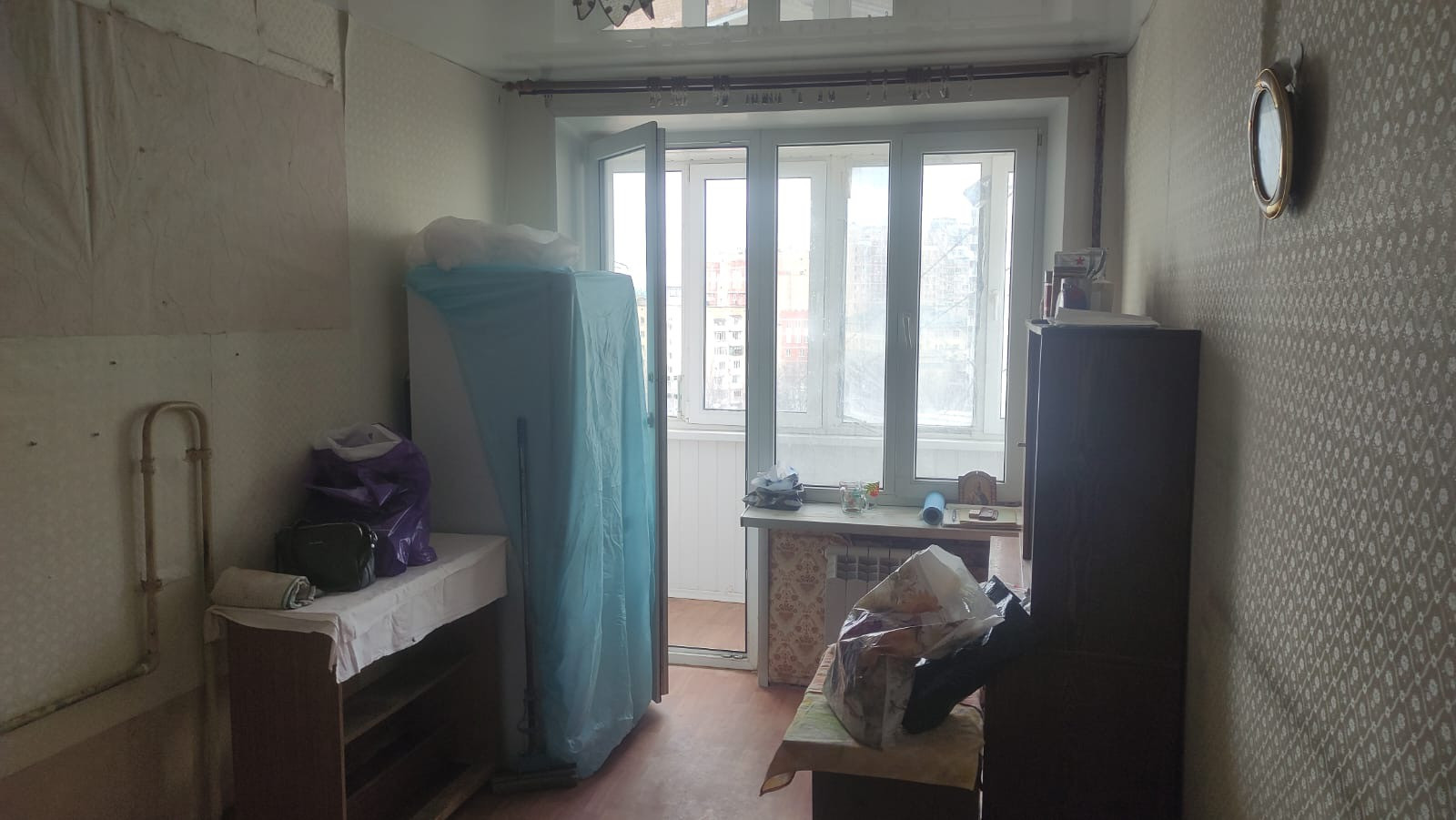 Квартира : комната -20м, кухня-7 м, сан у- совмещен. Имеется застекленный балкон , натяжной потолок.