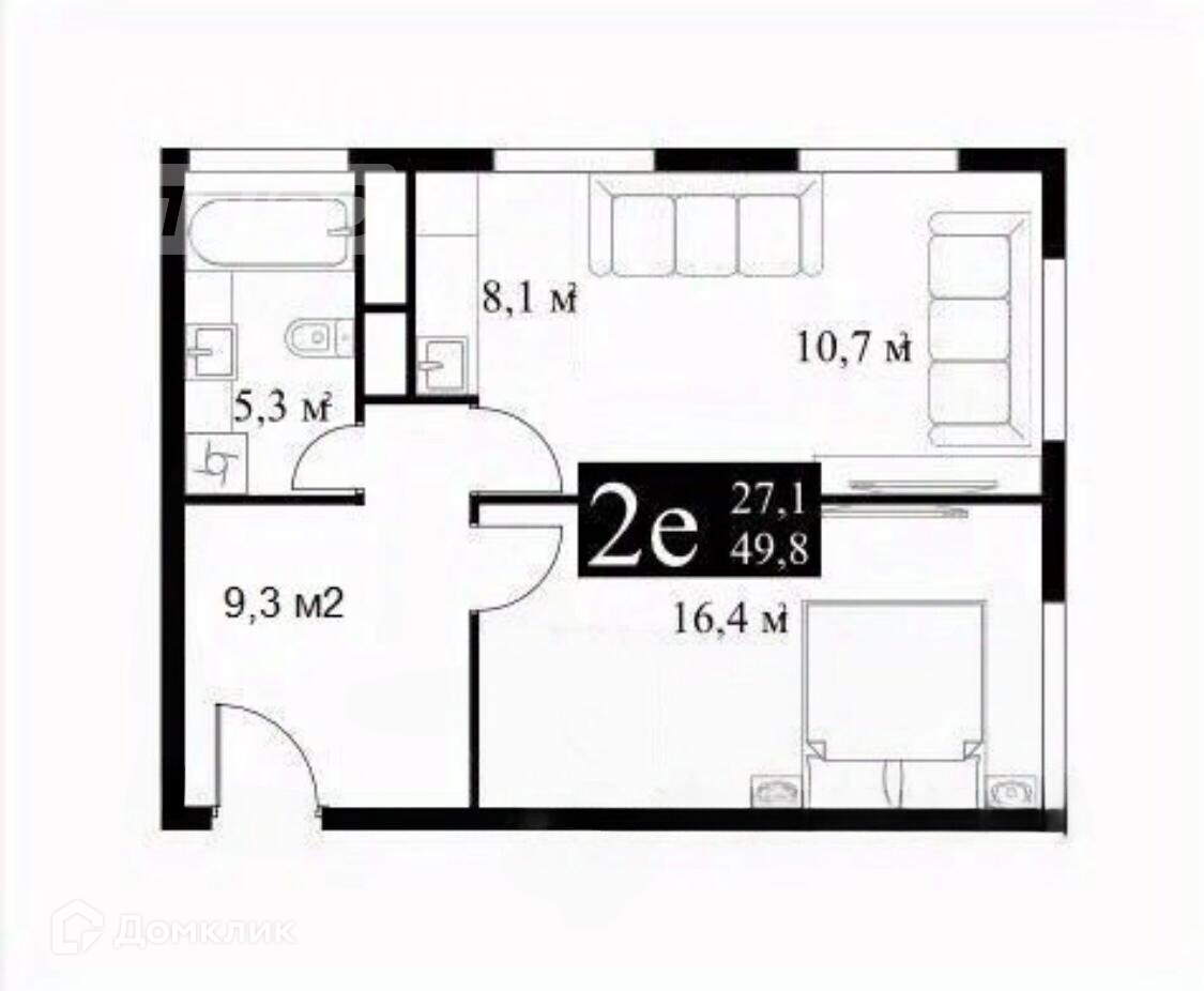 Общая площадь 49.8 м2
