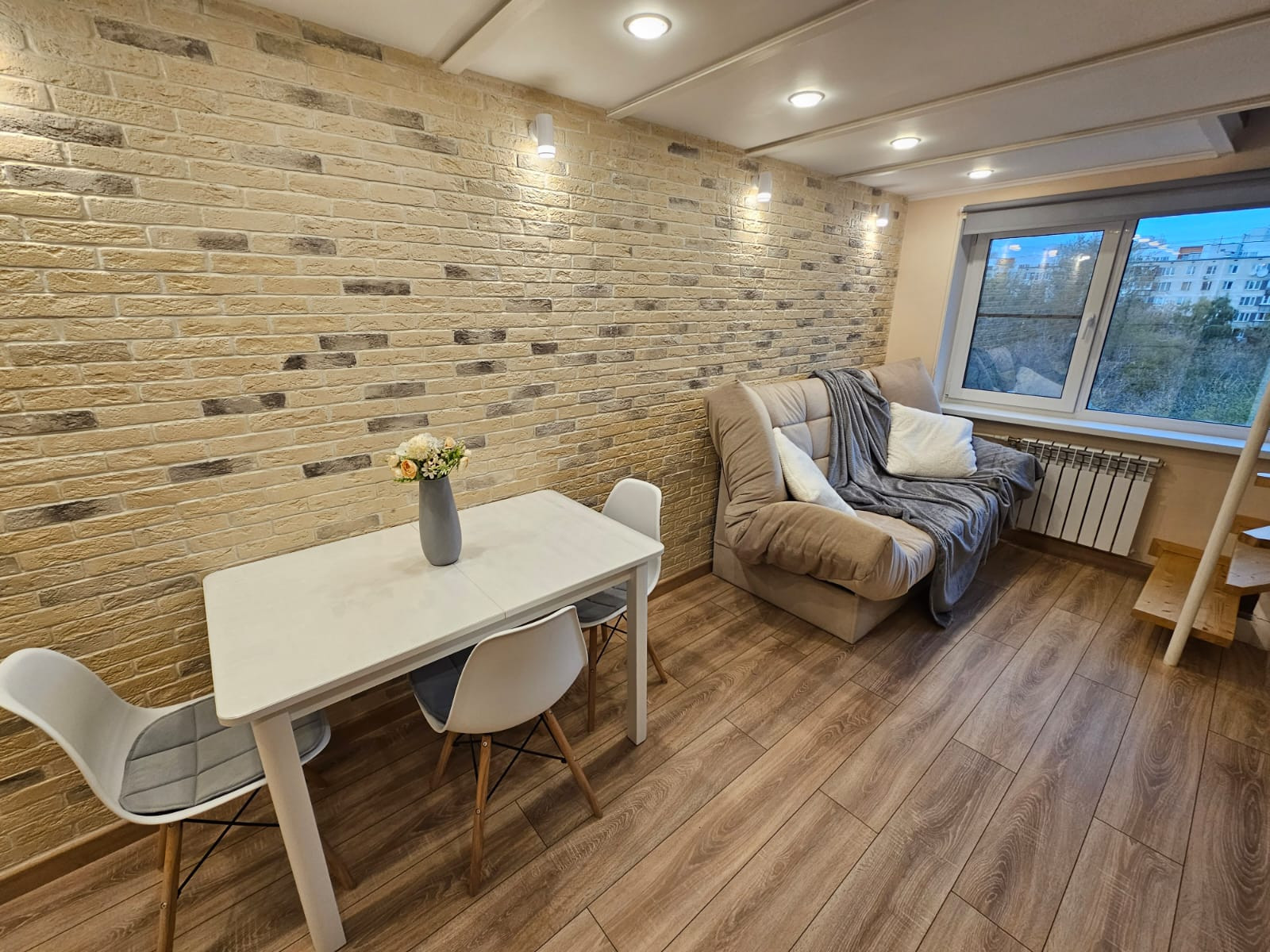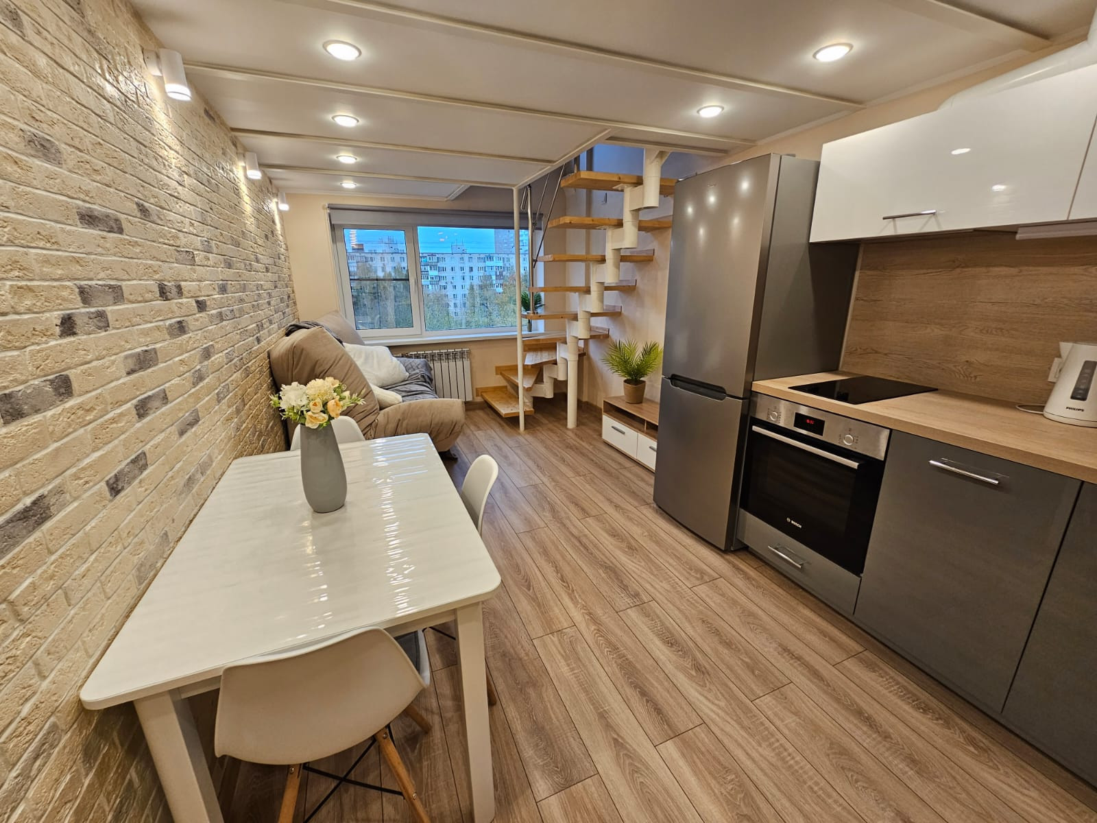 Общая высота 4,6 метра позволила разделить помещение на 2 яруса комфортной высоты общей площадью 35 кв.м. Кадастр по площади 1 этажа - 18,4 кв.м., налог около 4т.р. в год, коммунальные платежи - 3,5 т.р. в мес. На первом этаже: прихожая, сан. узел, кухня, гостиная. На втором - спальная с двуспальной кроватью и сан. узел с ванной. В квартире выполнен дизайнерский ремонт. Использовались только качественные материалы т сантехника. Вся мебель и бытовая техника (холодильник, варочная поверхность, телевизор, стиральная машина) в идеальном состоянии остается новому собственнику. В здании выполнен современный ремонт, внедрены передовые стандарты безопасности: консьерж, охрана, кодовый замок, видеонаблюдение.