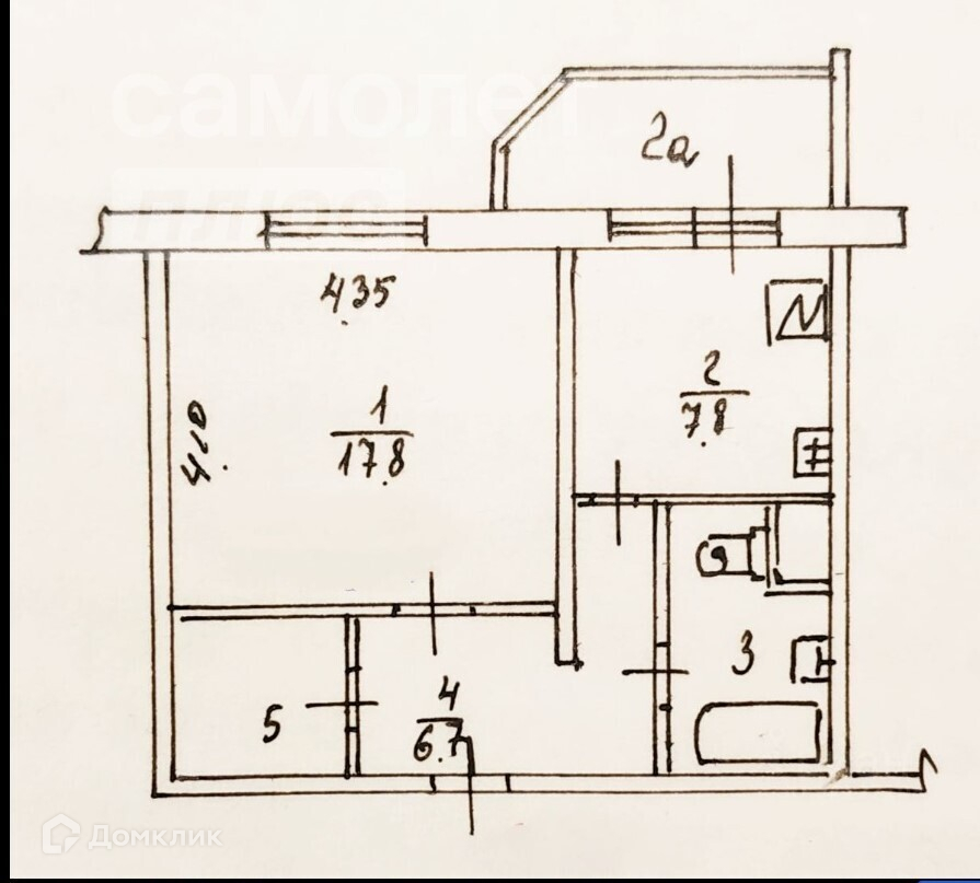 Общая площадь 41.4 м2