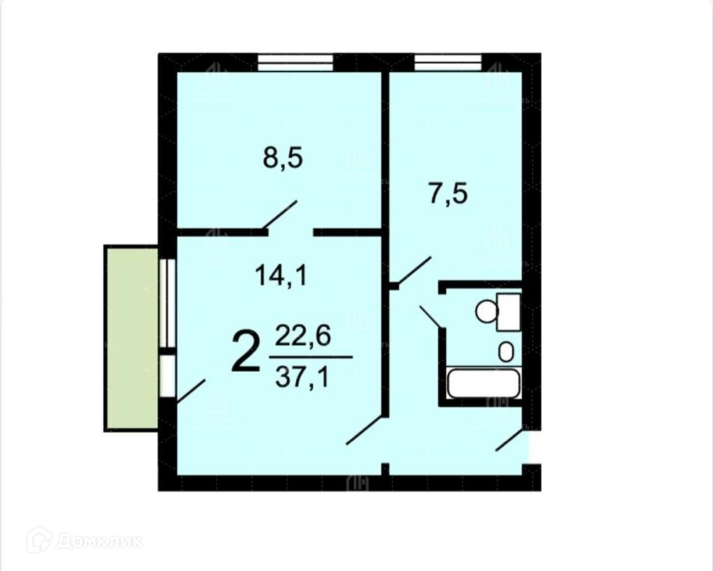 Общая площадь 37.1 м2