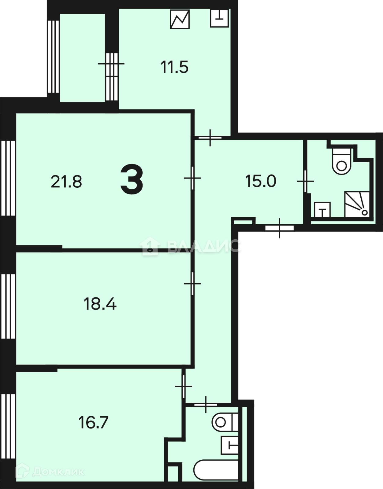 Количество комнат 3