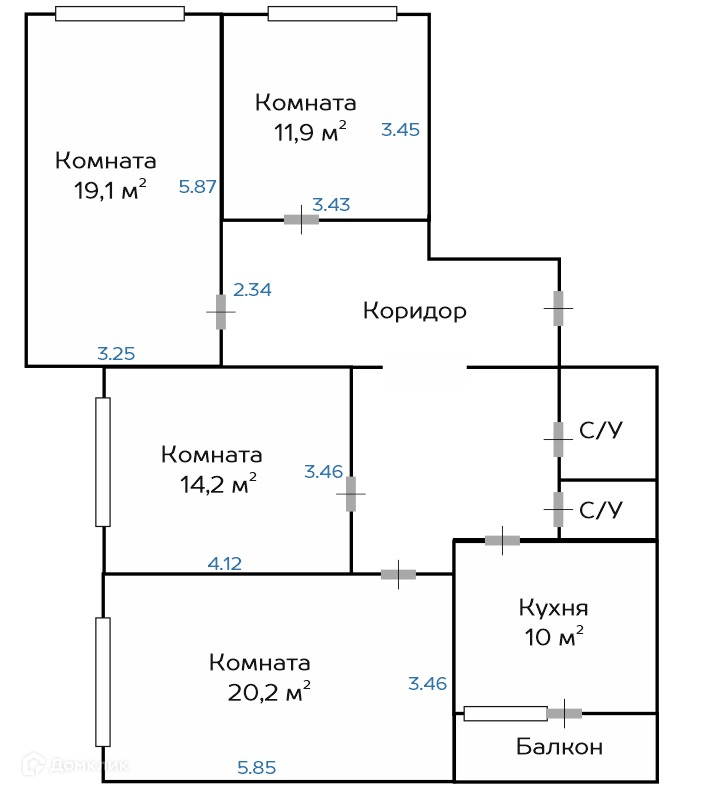 Общая площадь 100.9 м2