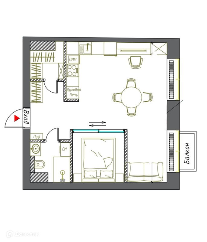 Общая площадь 42.4 м2
