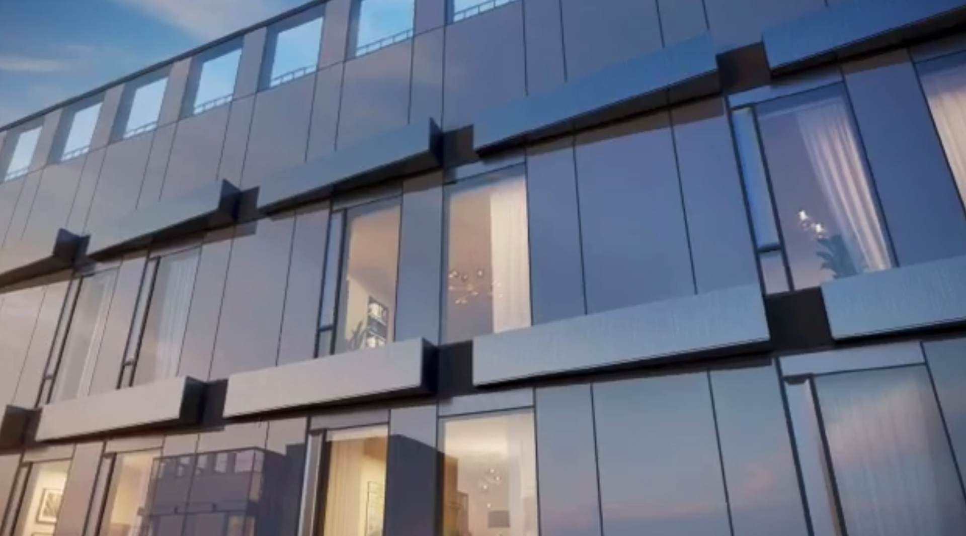 ЖК Eniteo  камерный проект, который расположен в двух монолитных башнях высотой 42 этажа, соединенных стилобатом, блестящий экстерьер которых выполнен с сочетанием металла латунных оттенков и стекла, подчеркивающих воздушный характер и оригинальность геометрии.