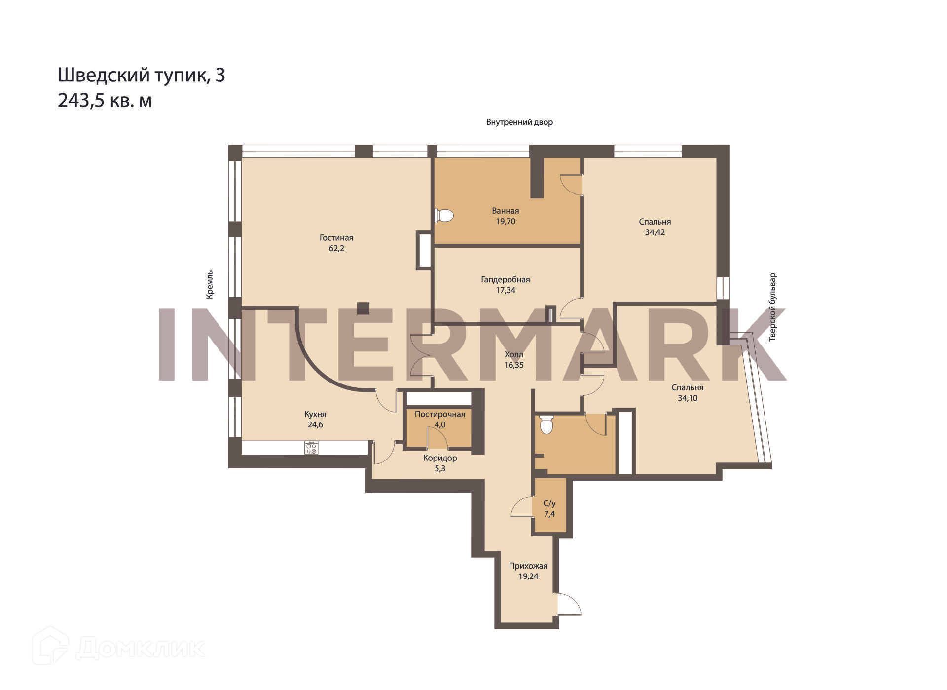 4-комнатная квартира, 243.5 м2, этаж 11 / 12, на продажу в Москве, Шведский тупик, 3