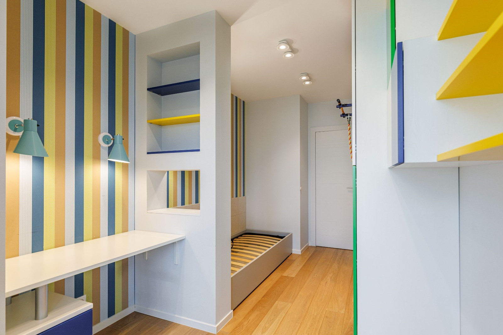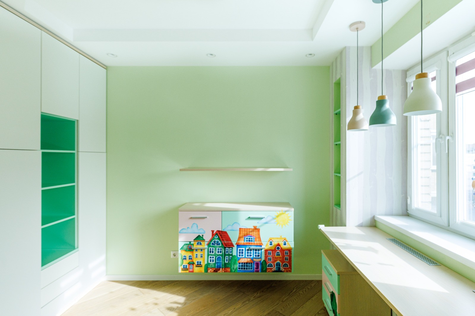 3) Две небольших, удобно спланированных детских комнаты, предусматривающих зоны для сна, рабочие зоны, спортивный и музыкальный уголки, игровые пространства.