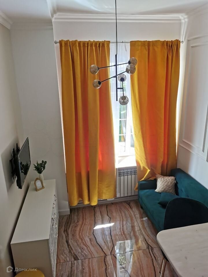 ОБ АПАРТАМЕНТАХ: в студии сделан качественный ремонт, пол с подогревом, выложен керамогранит, кухня, спальное место, стиральная машина, совмещенный сан. узел, окна во двор. Высота потолков 3,5 м.