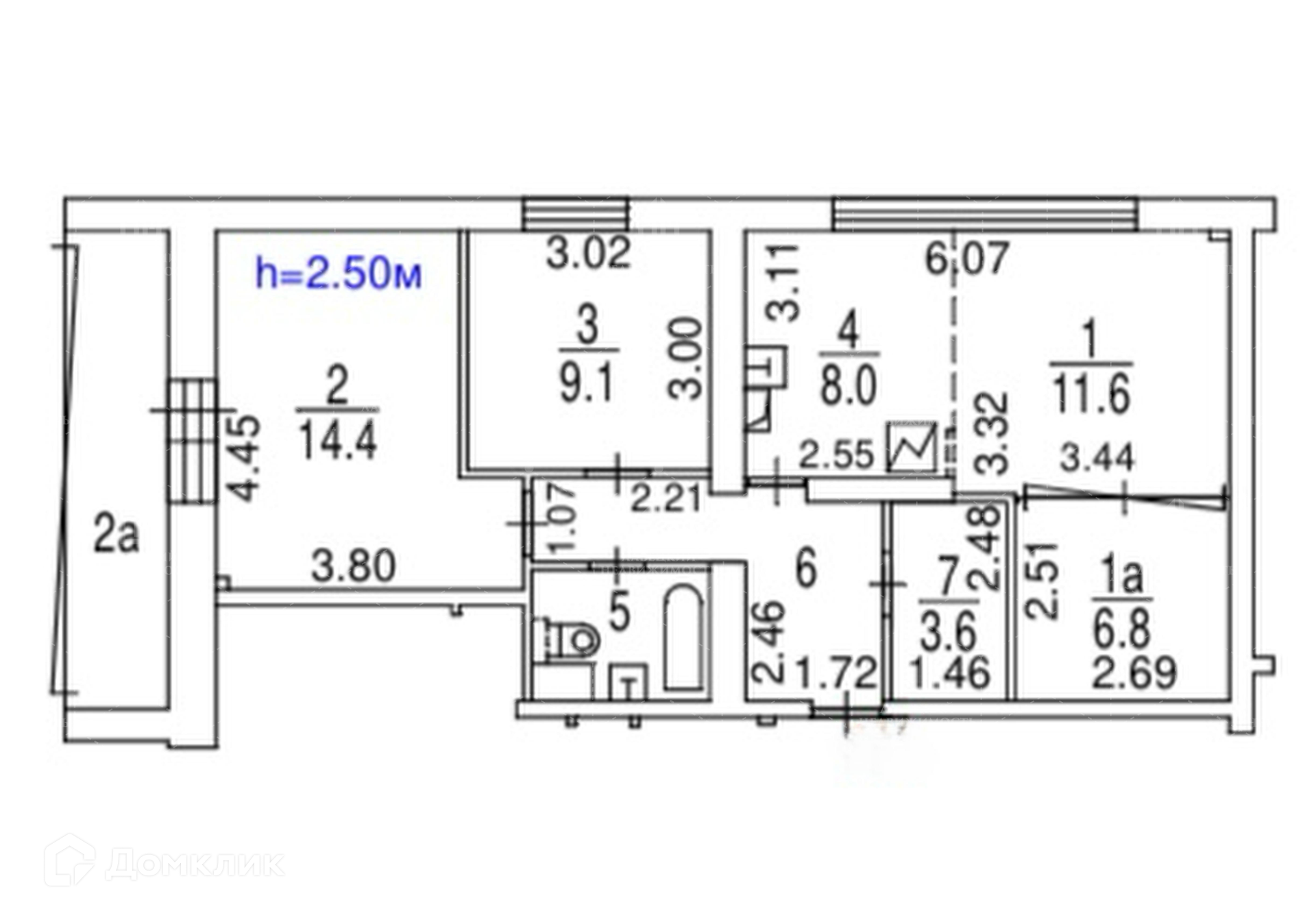 Высота потолков 2.64 м