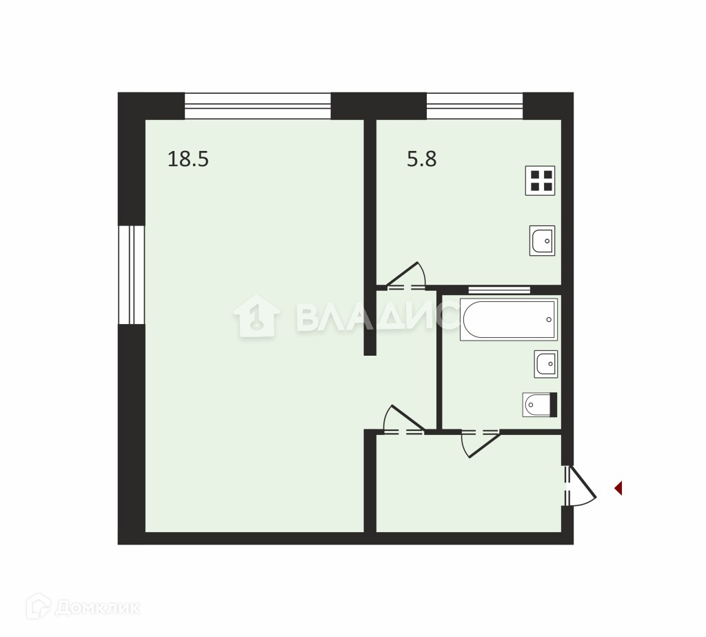 Жилая площадь 18.5 м2