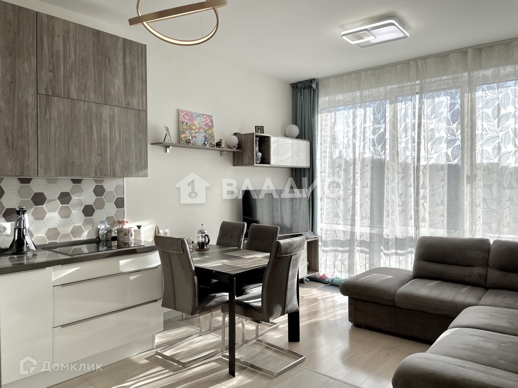 -просторная кухня-гостиная -18 м2, с панорамными окнами в пол,