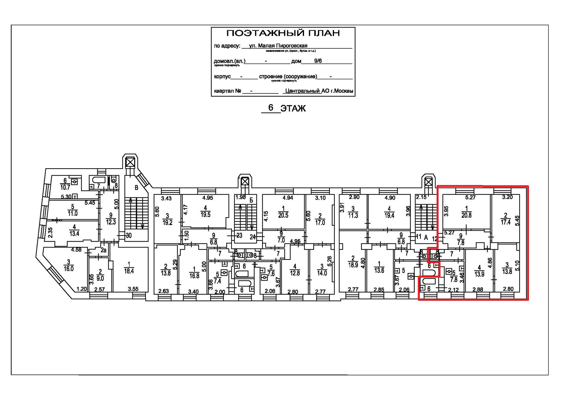 4-комнатная квартира, 88.2 м2, этаж 6 / 6, на продажу в Москве, Малая Пироговская улица, 9/6