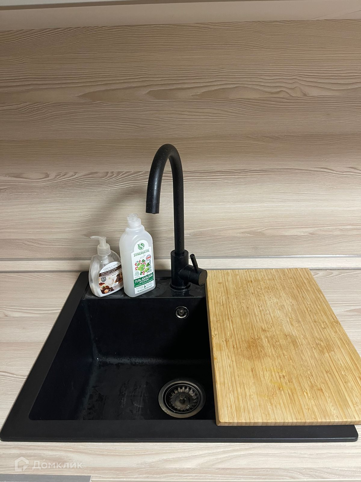 Зона мини-кухни: полноценная вместительная раковина, индукционная плита ORE с сенсорным управлением (посуда для плиты остается), электрический духовой шкаф, вместительный бесшумный холодильник ATLANT с морозильной камерой, вместительные шкафы.