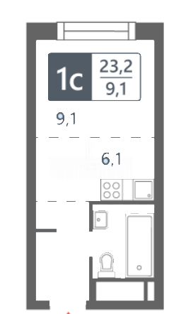 Общая площадь 23.2 м2