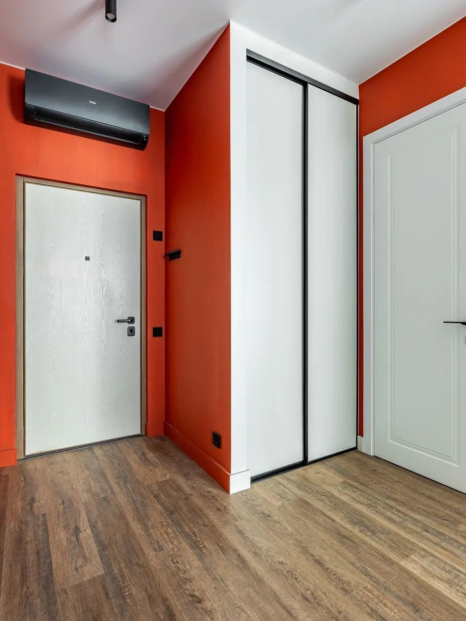 В коридоре расположен хоз шкаф со стиральной машинкой ,располагающий большим местом для хранения для полноценной постирочной. Кондиционер фирмы haier последней технологии ,заведён интернет кабель, у входа установлен мастер выключатель, позволяющий перед выходом выключить везде свет одним нажатием.