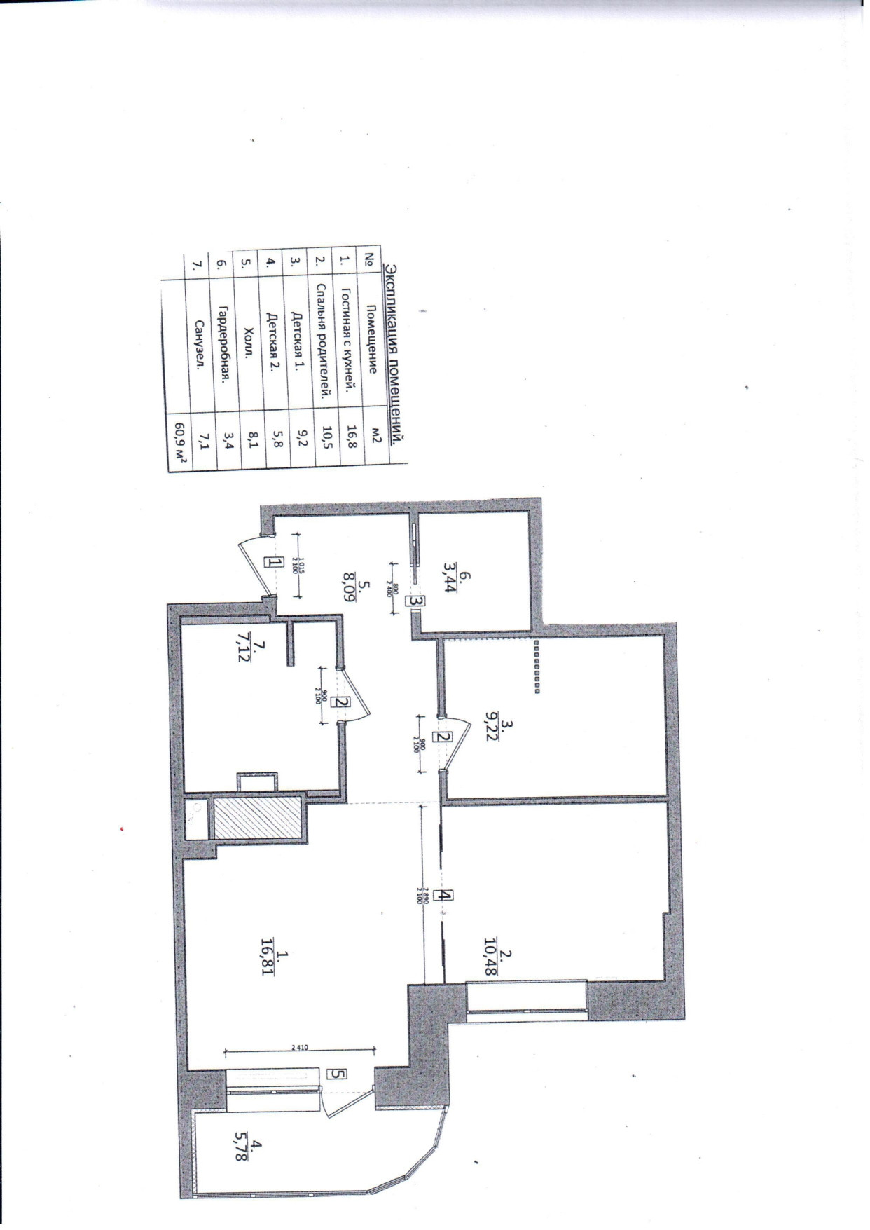 Общая площадь 55.9 м2