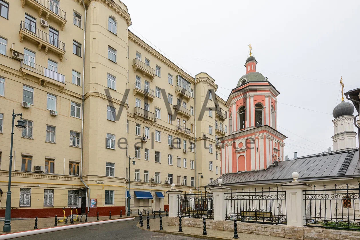 Продается квартира на пересечении Богословского переулка и Тверского бульвара. Из окон открывается вид на церковь Иоанна Богослова на Бронной и Московский драматический театр им. А.С. Пушкина.