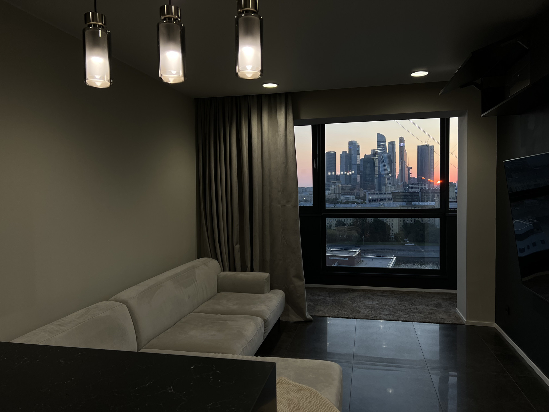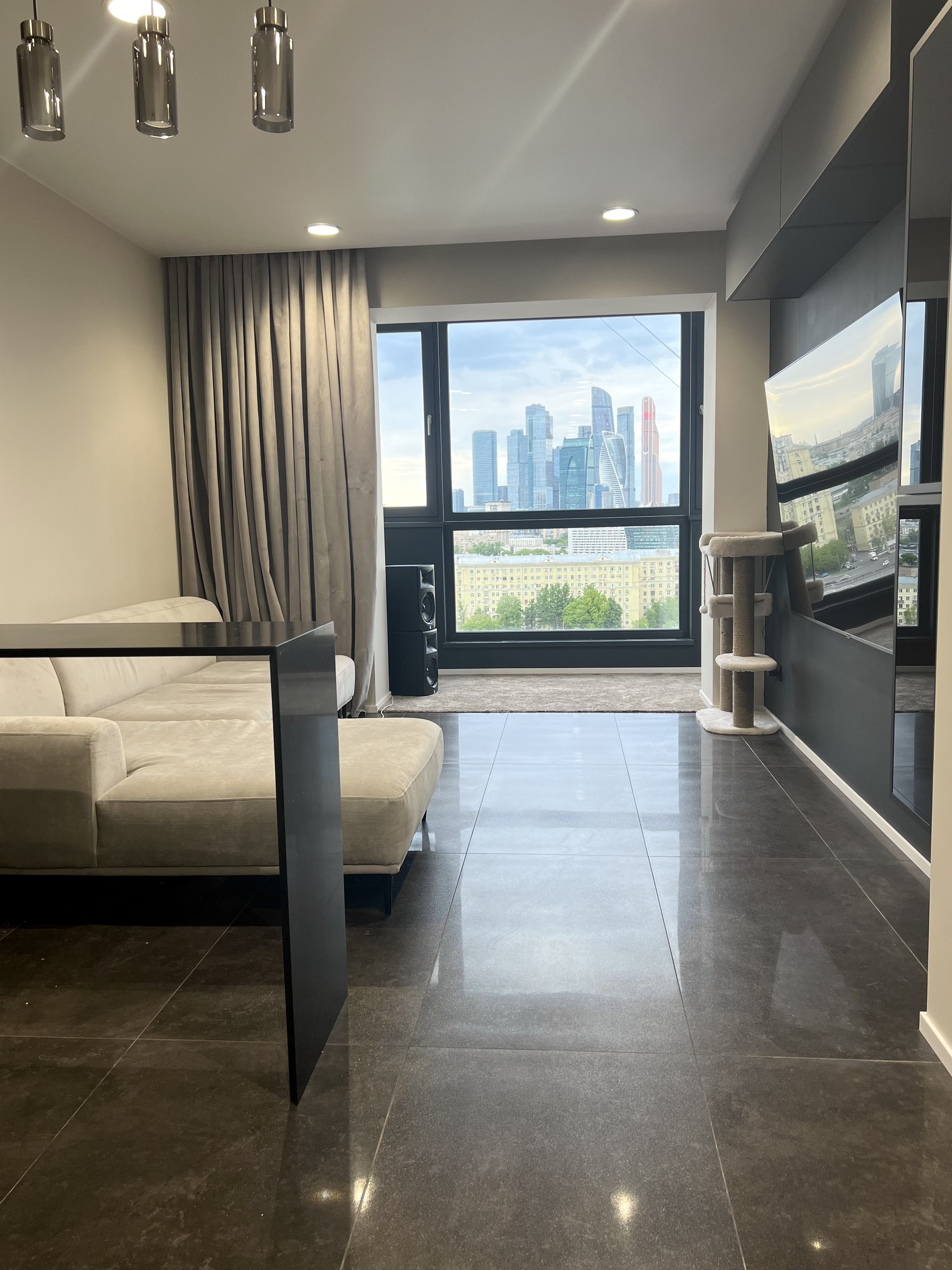 Квартира находится на 15 этаже, окна выходят на солнечную сторону с панорамным видом на комплекс «Москва Сити» и реку Москва. Общая площадь: 45,9 кв.м.