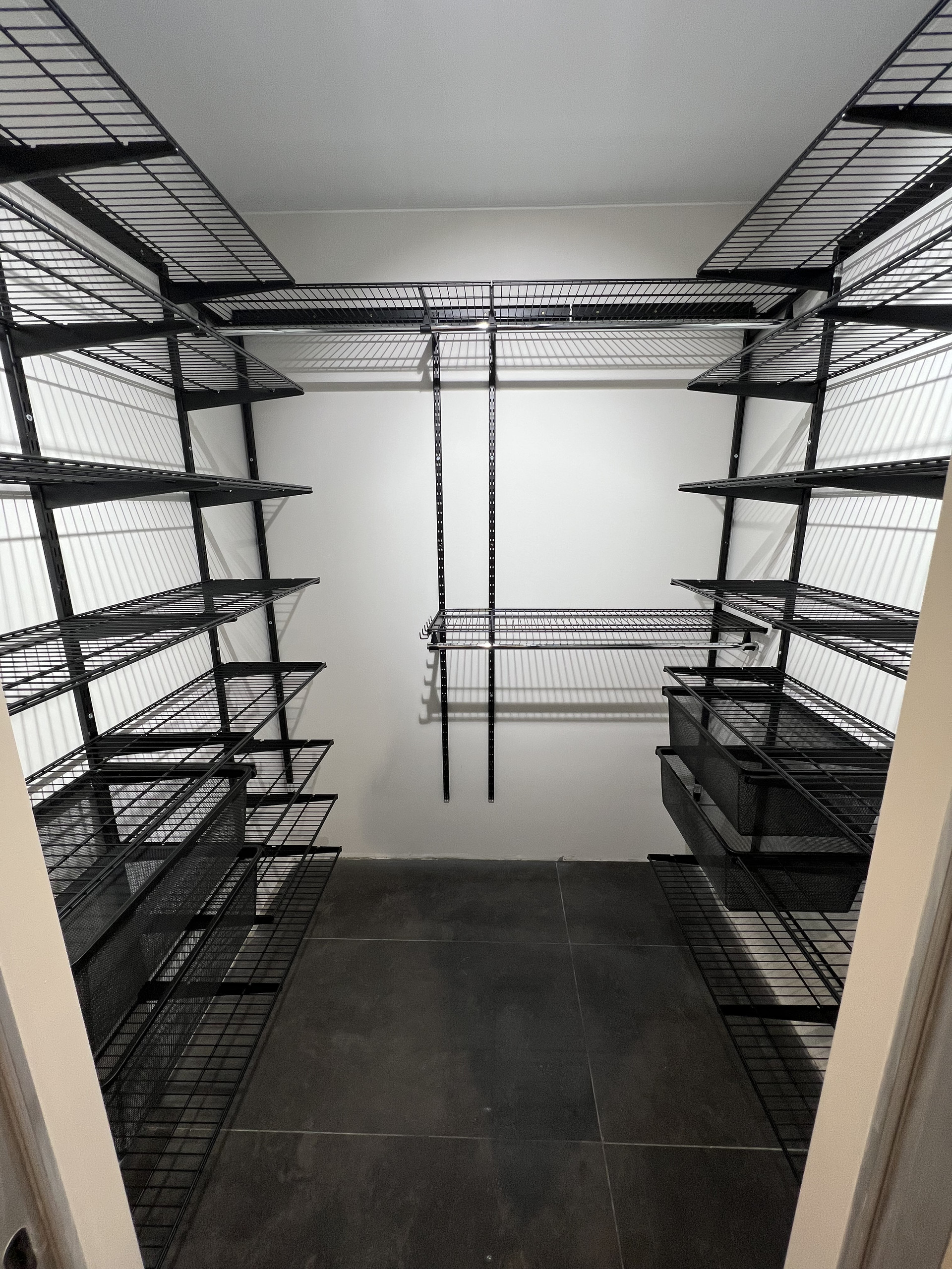 Объемная гардеробная площадью 4,5 кв.м, большое количество электрических розеток.