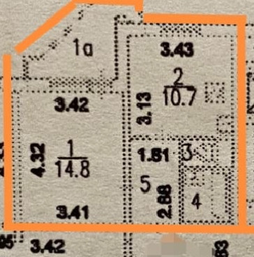 Общая площадь 34.2 м2
