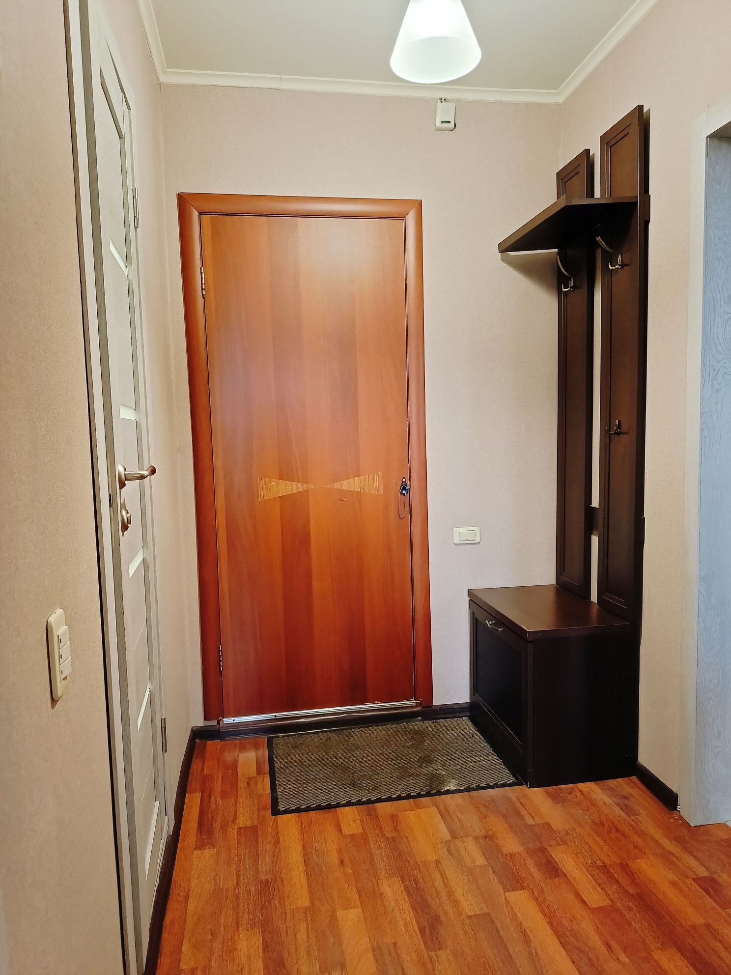 Окна пластиковые, на полу ламинат, на стенах – обои, на воду – счётчики. В прошлом году установлены новые межкомнатные двери. Из спальни выход на просторную остеклённую лоджию.