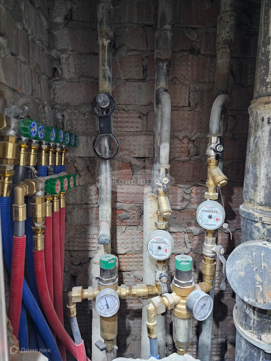 Гидроизоляция санузла. Стильная сантехника (Душевая стойка и гигиенический душ с автоматическим термостатом, 4 фильтра тонкой очистки с регулятором давления, коллекторная разводка водоснабжения, запорная арматура на каждую точку).