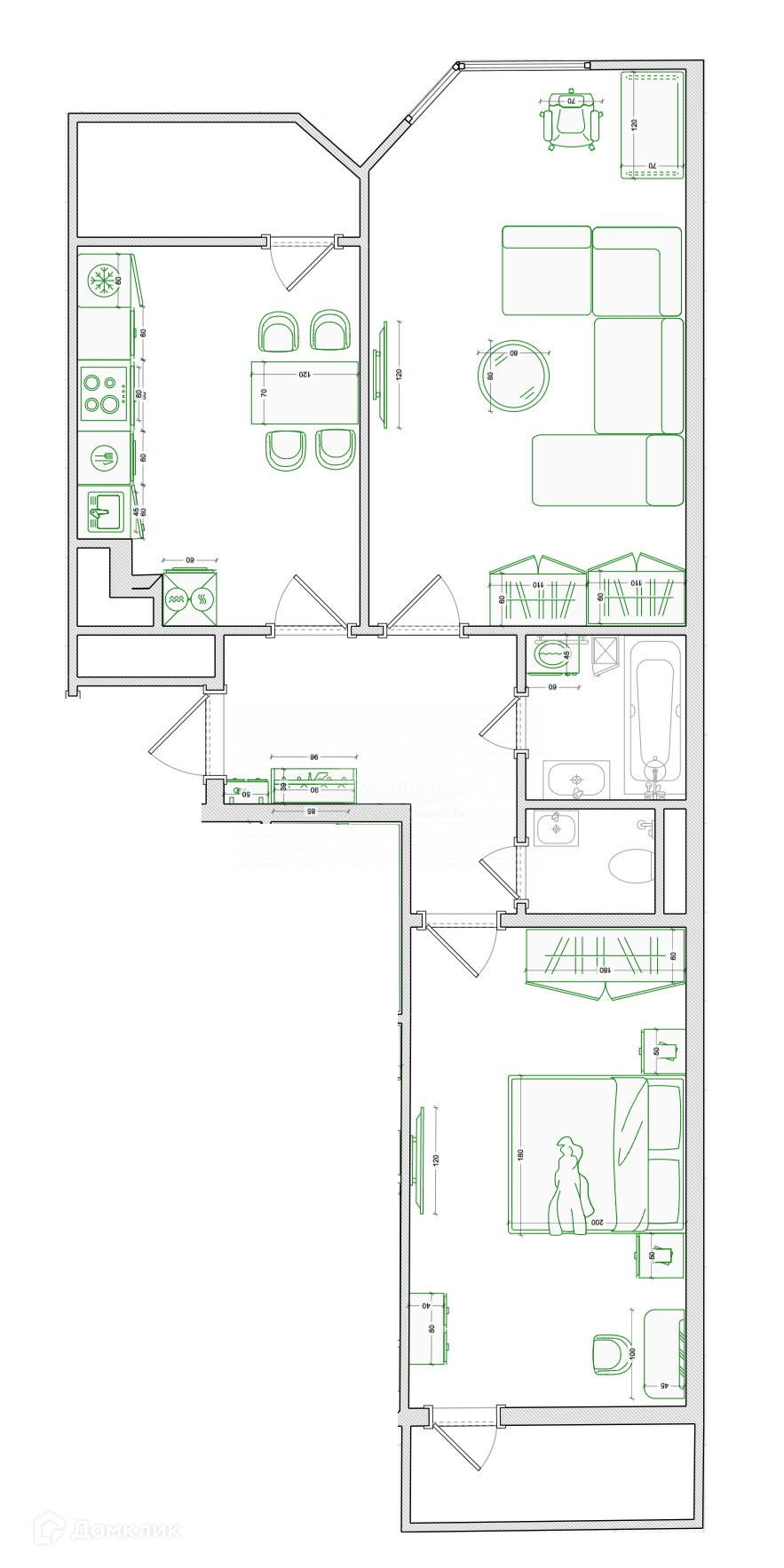 Арт. 62703247 Квартира в прекрасном доме с идеальной планировкой — 2 изолированных комнаты (большая кухня с лоджией, большой зал, хозяйская спальня с лоджией, раздельный санузел) с дизайнерским ремонтом и прекрасным видом из окон. Плюс на этаже кладовка 2,5 квадратных метра.