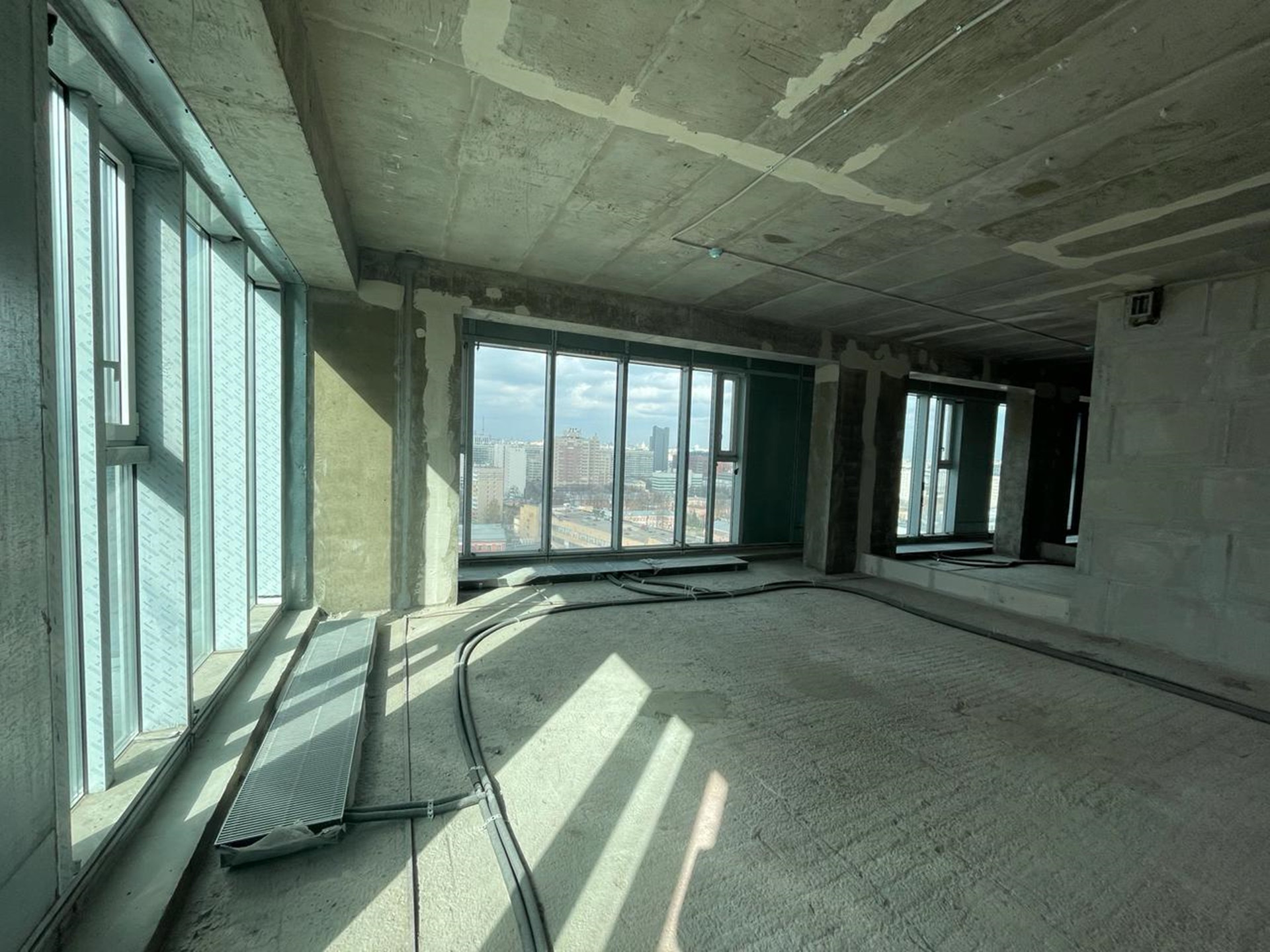 Видовой 17 этаж 29-этажного монолитного дома 2022 года постройки. Квартира свободной планировки с Панорамным Остеклением. Общей площадью 151,6 кв.м/ жилой площадью 95,8 кв.м (комнаты 44,2+25,4+26,2/ Кухня 16,5 кв.м. Планировка предусматривает: Кухню-гостиную 60,7 кв.м, 2 спальни 25,4 кв.м и 26,2 кв.м, а также 2 санузла: 8,4 кв.м и 6,0 кв.м и просторную прихожую с холлом 17,8 кв.м. Можно объединить с соседней квартирой площадью 68,2 кв.м (также продается) и получится Квартира общей площадью 219,8 кв.м. Окна выходят на 2 стороны – в квартире всегда солнечно.