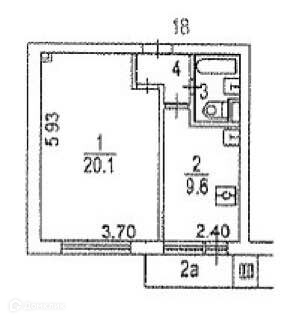 Жилая площадь 20.1 м2