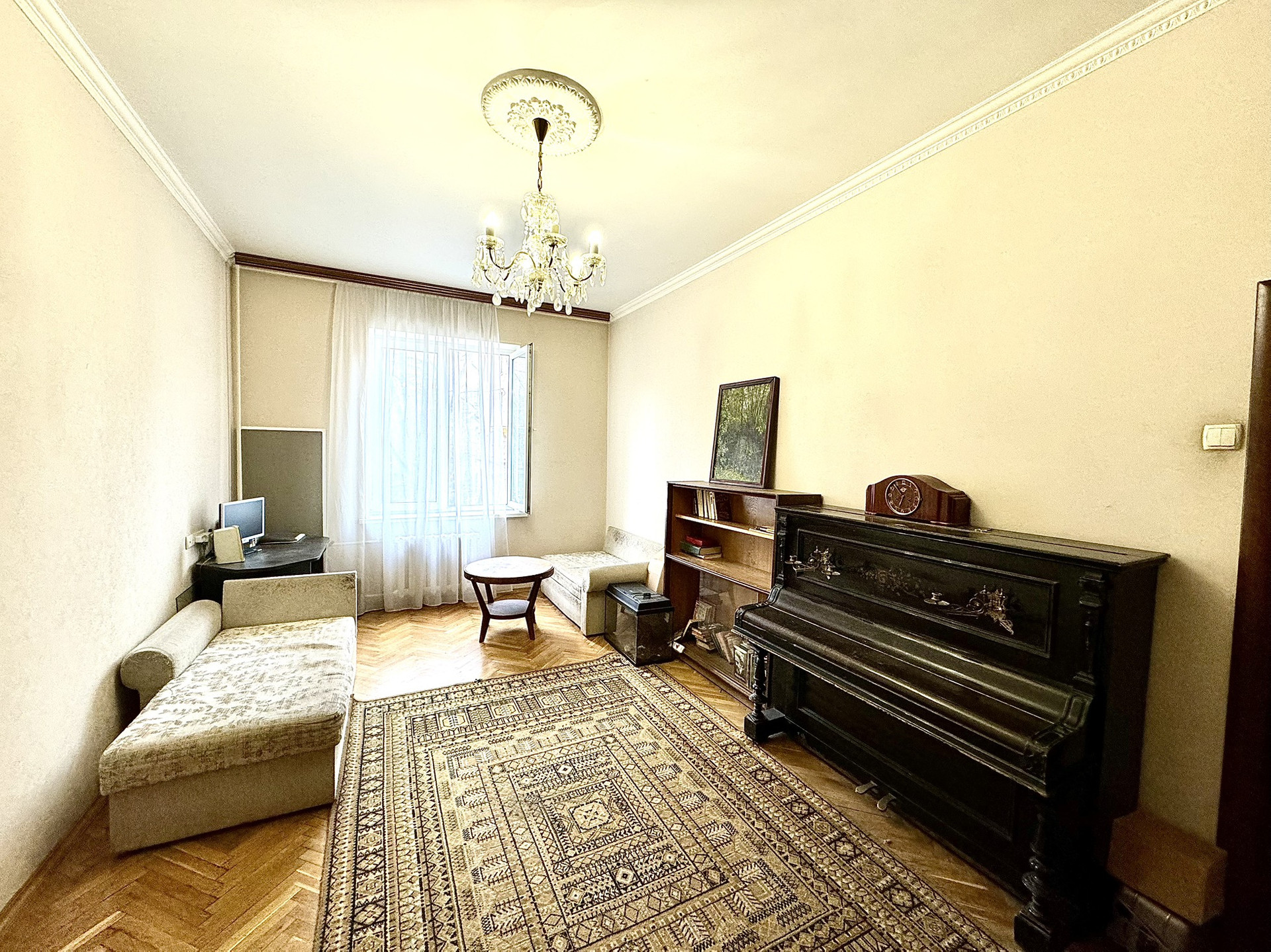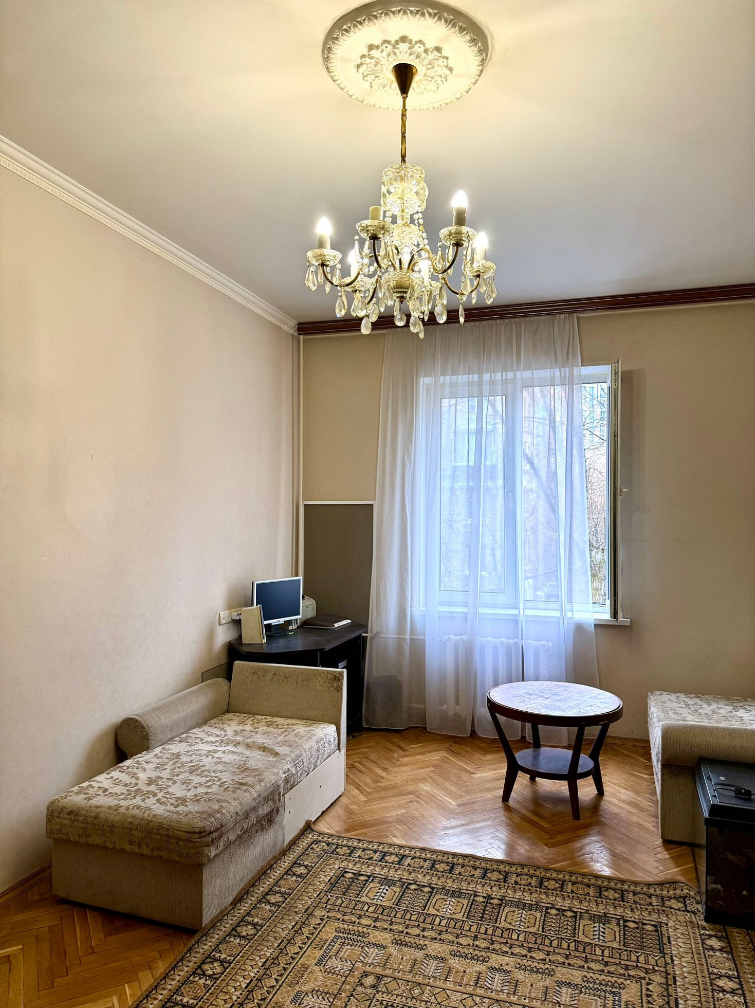 , светлую двухкомнатную квартиру с балконом , в кирпичном   доме 57 года постройки , с высокими потолками и большими комнатами правильной формы