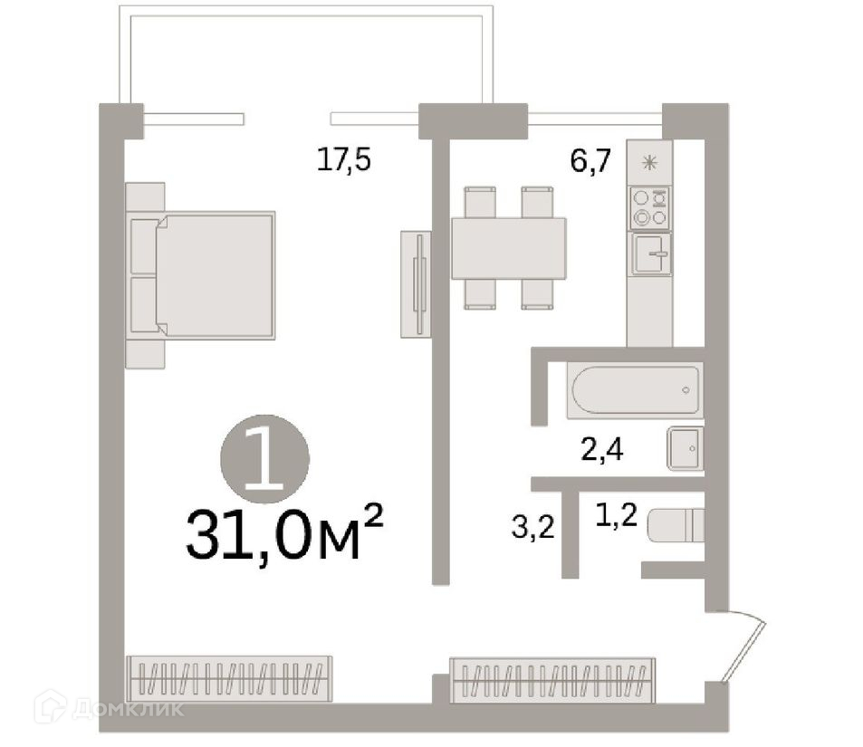 Общая площадь 31 м2