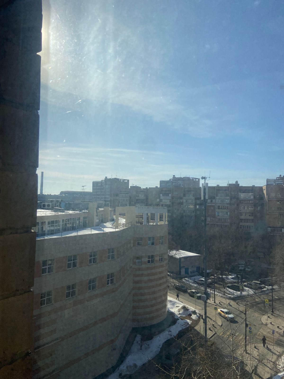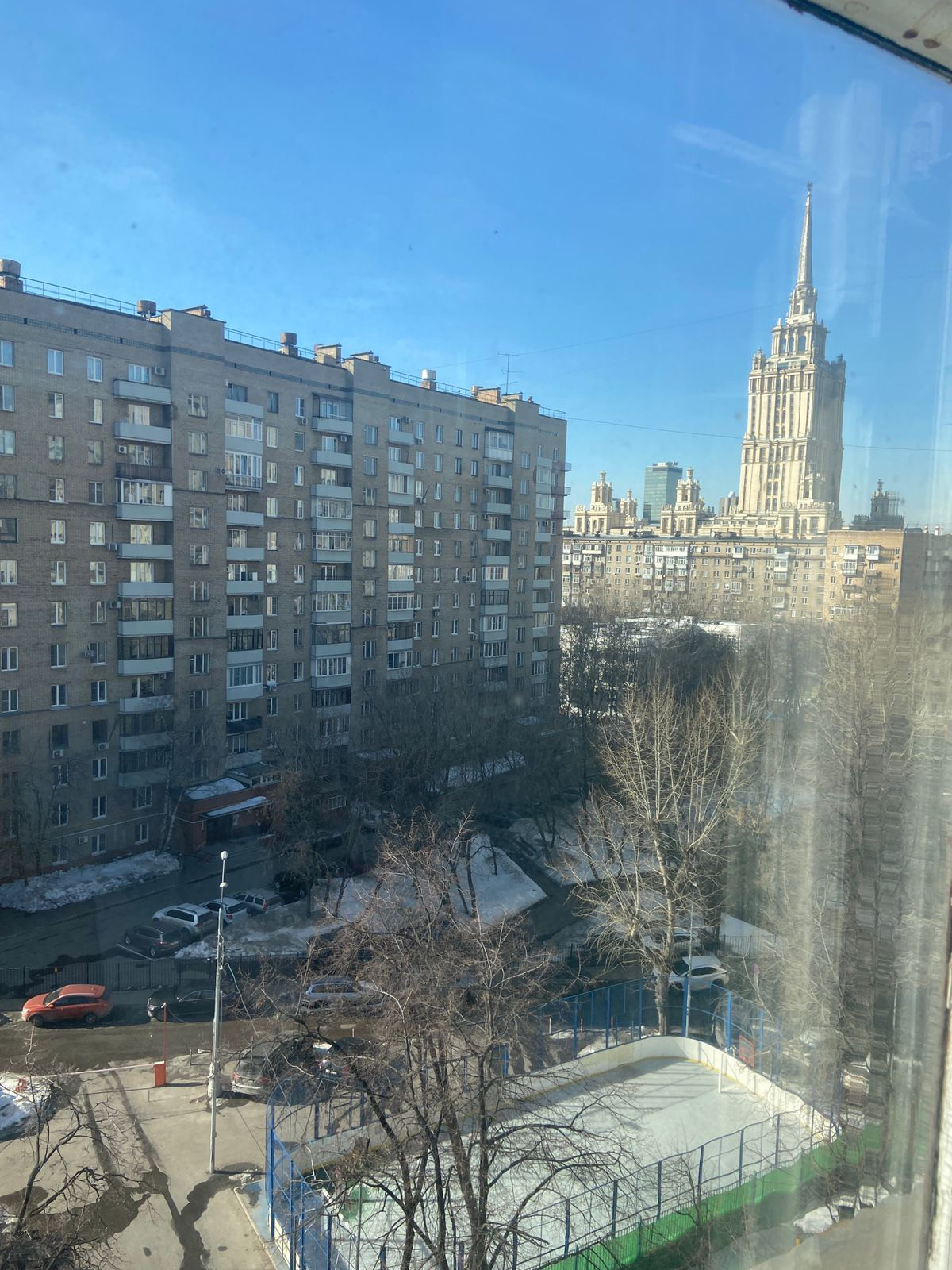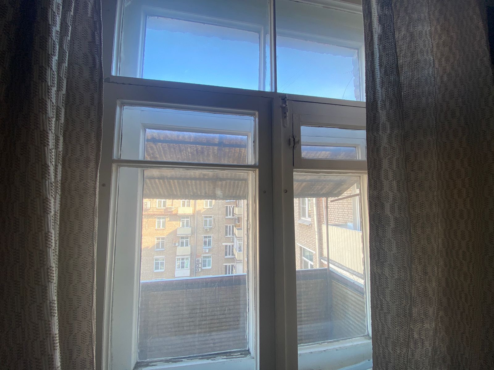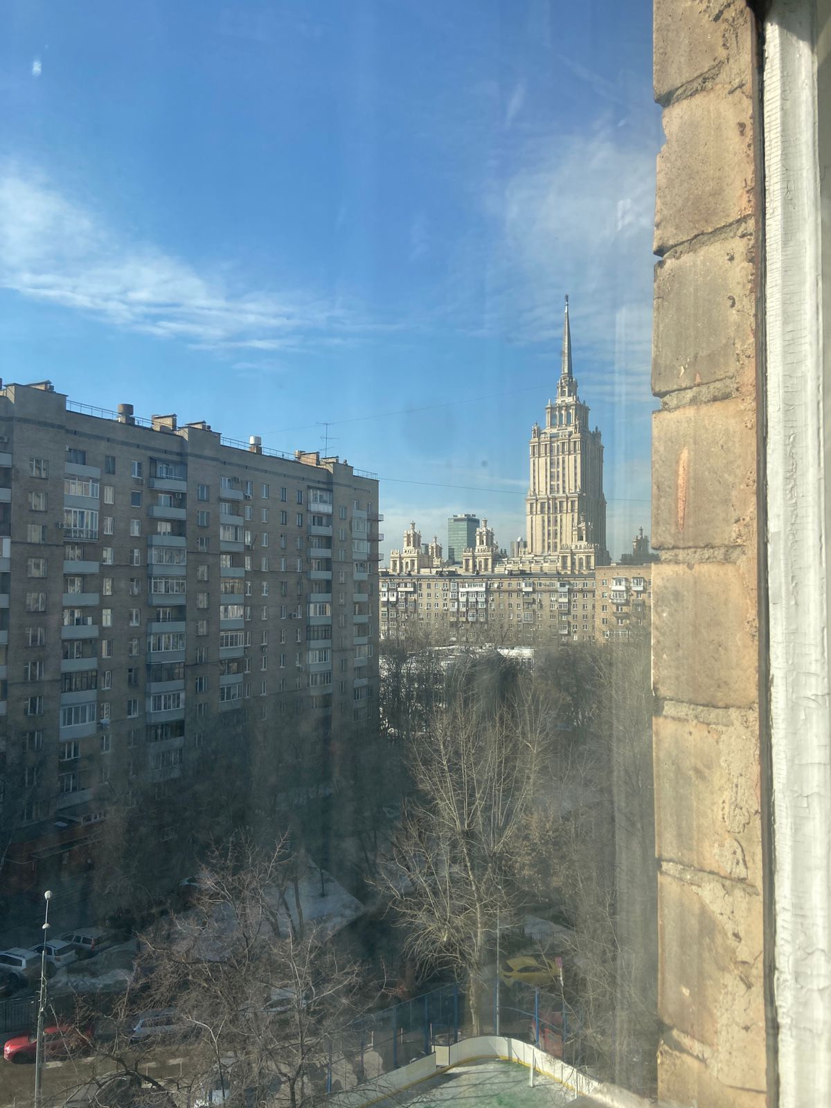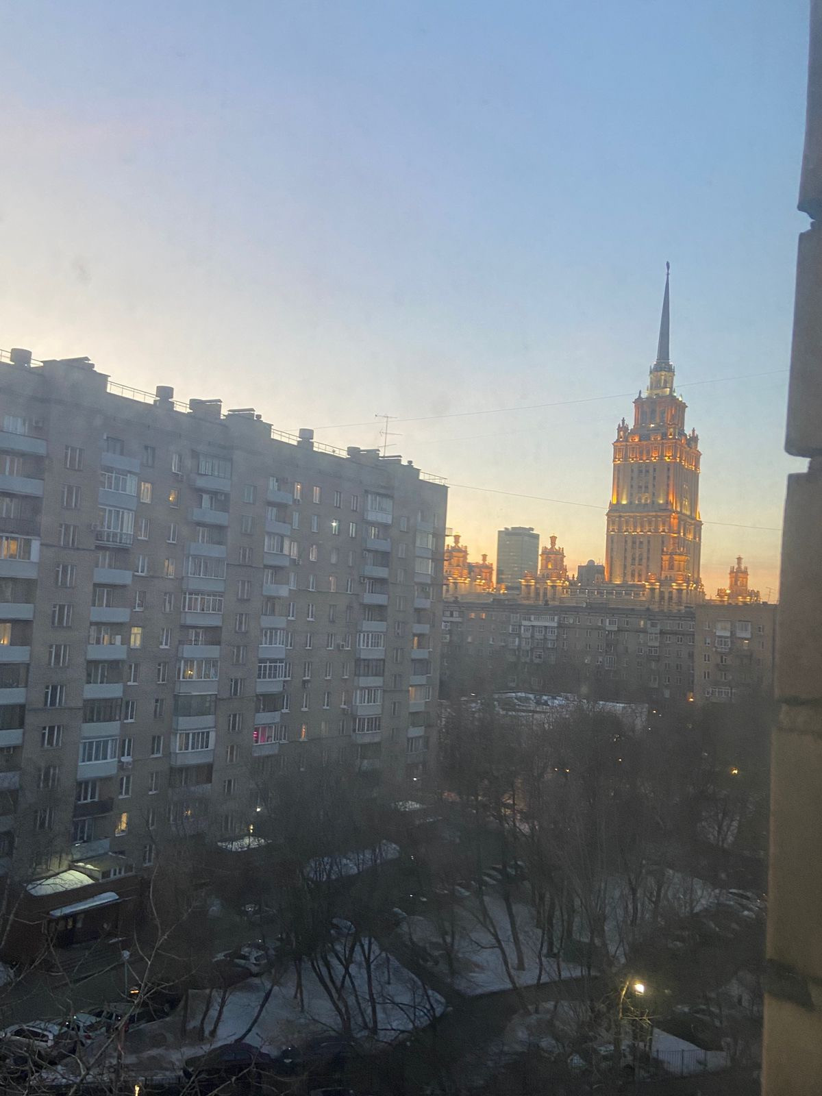 Окна с видом на разные стороны дома - одна комната (с балконом) - утреннее солнце, кухня - вечернее солнце и закат - очень красиво, вид на гостиницу Украину.