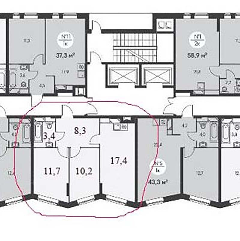 Комнаты 11,7 и 10,2 м2; кухня 17,4 м2. Высота потолков (с учётом натяжных)  2,80.
