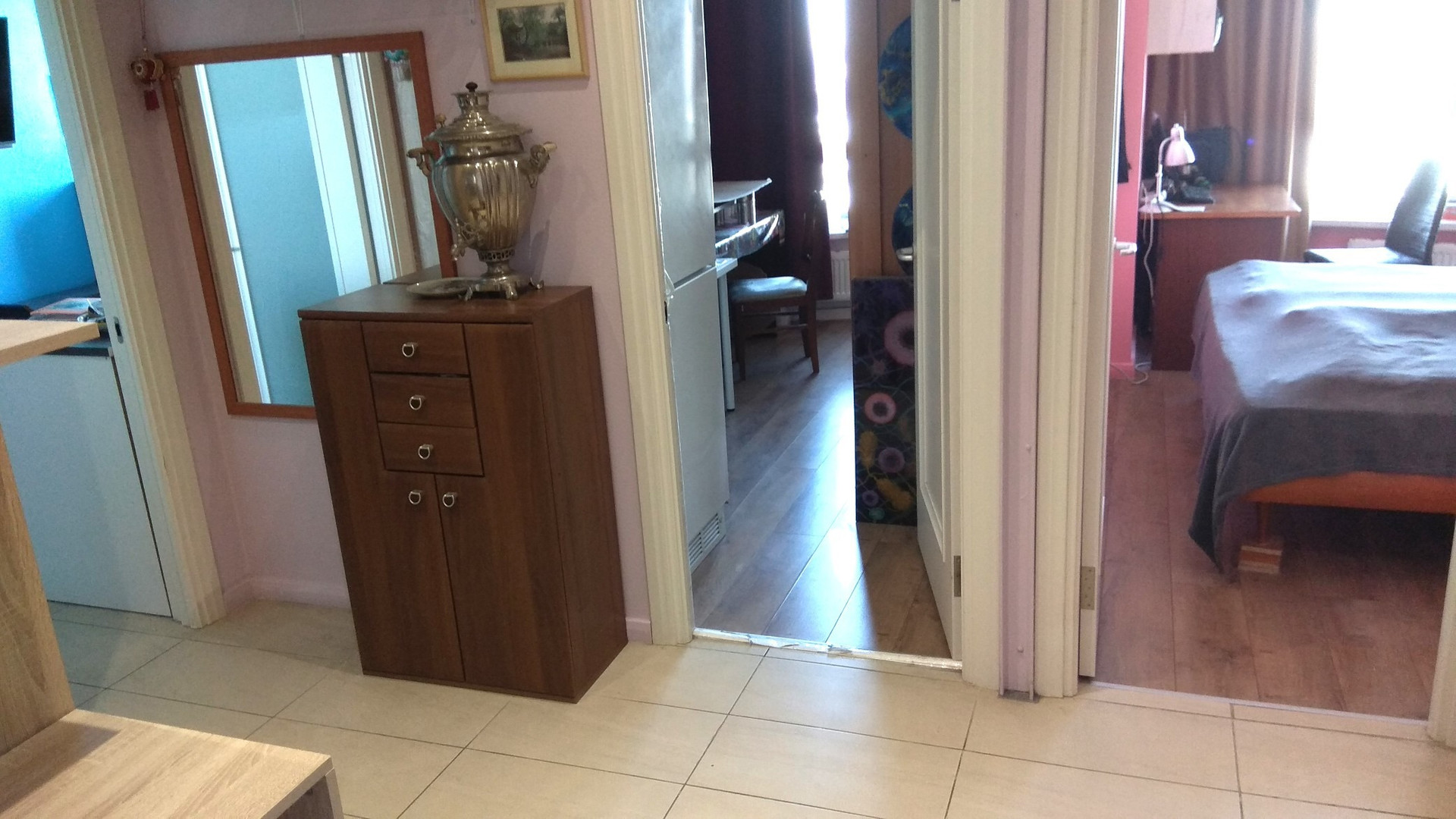 Ремонт от застройщика - полы (ламинат), натяжные потолки, плитка  в прекрасном состоянии.