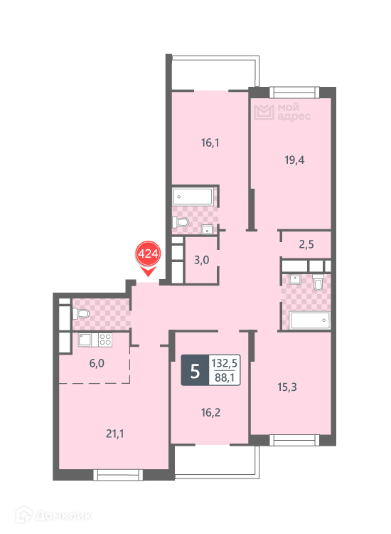 Общая площадь 132.5 м2
