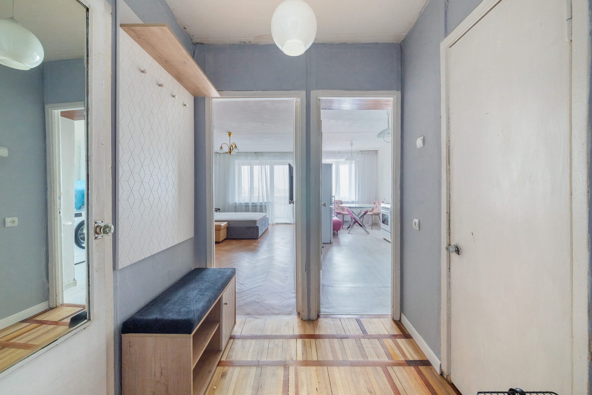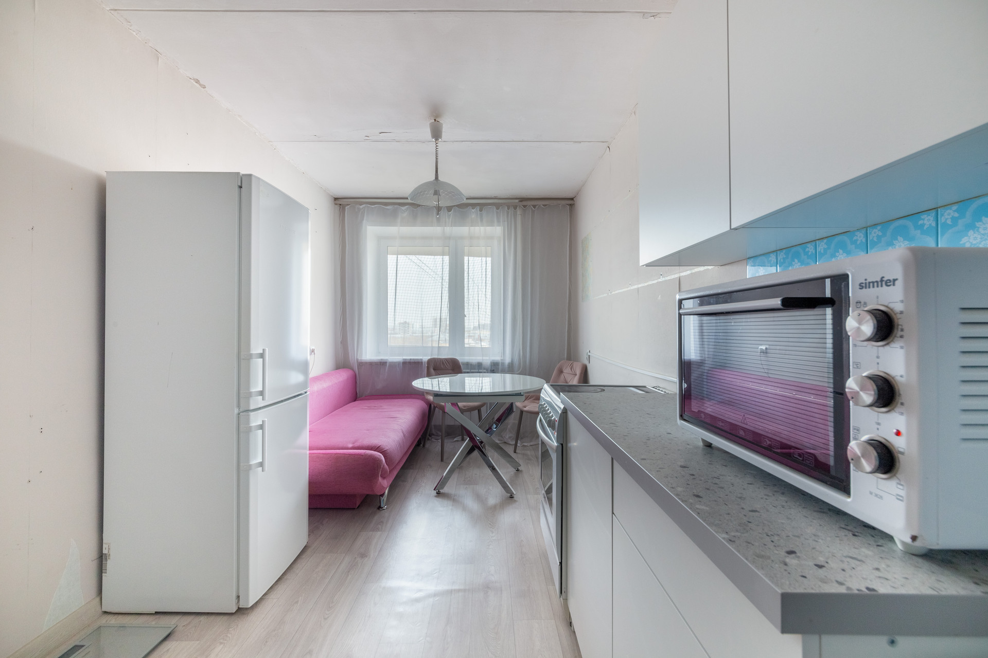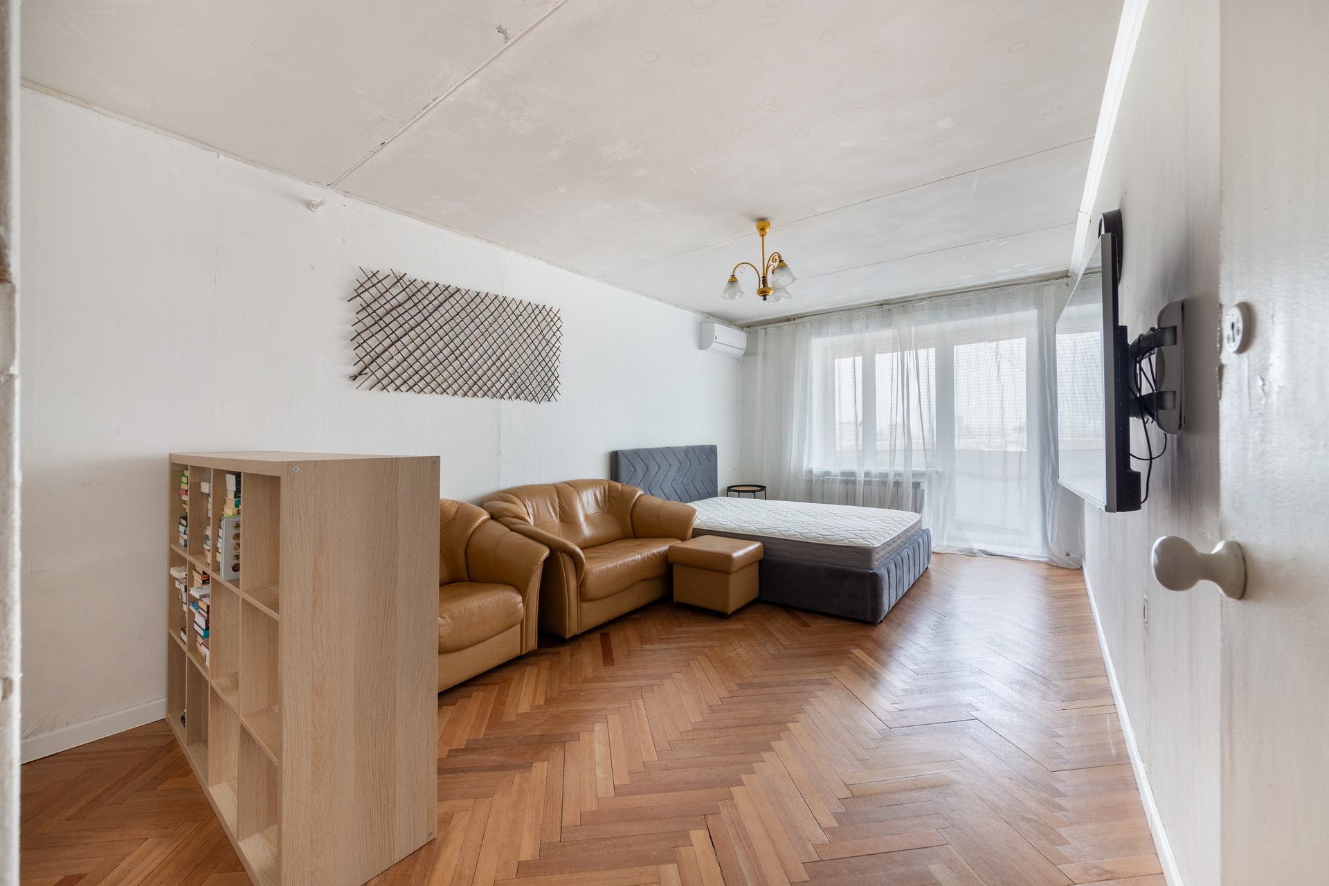 Сделан качественный косметический ремонт функциональная планировка: большая кухня (13, 5м2) гардеробная, просторная комната (20 м2) с лоджией.
