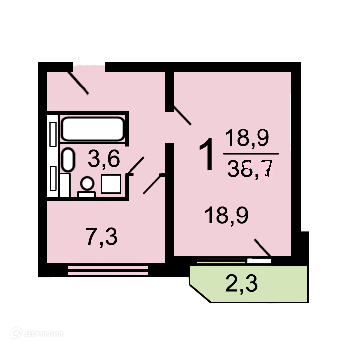 Общая площадь 36.7 м2
