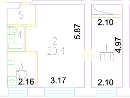 Общая площадь 41.7 м2