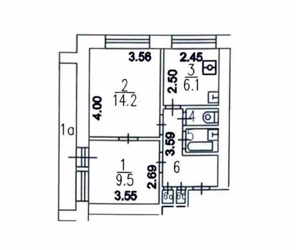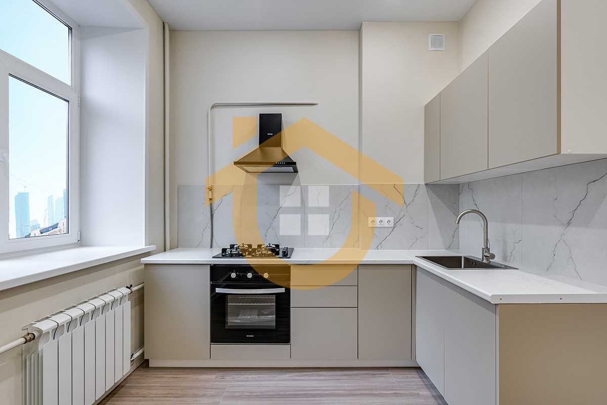 Две изолированные спальни 14,2 кв.м., 9,5 кв.м. Уютная кухня 6,1 кв. м с новым кухонным гарнитуром, духовым шкафом, варочной панелью и встроенной вытяжкой.
